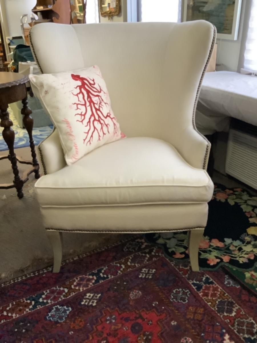 B - 131. Off-White Upholstered,Butterfly Wing Studded Arm Chair