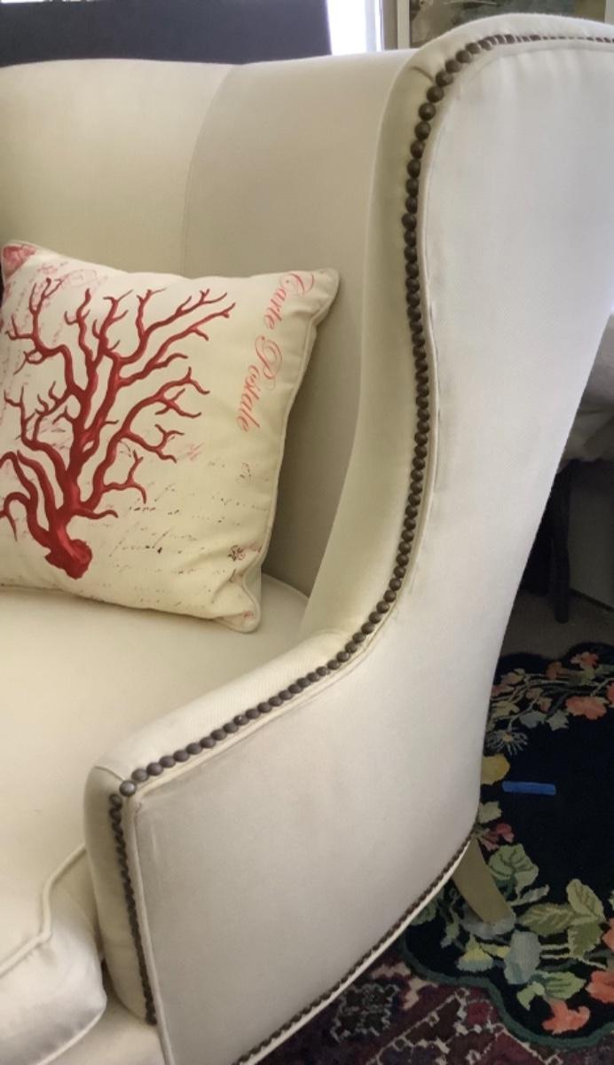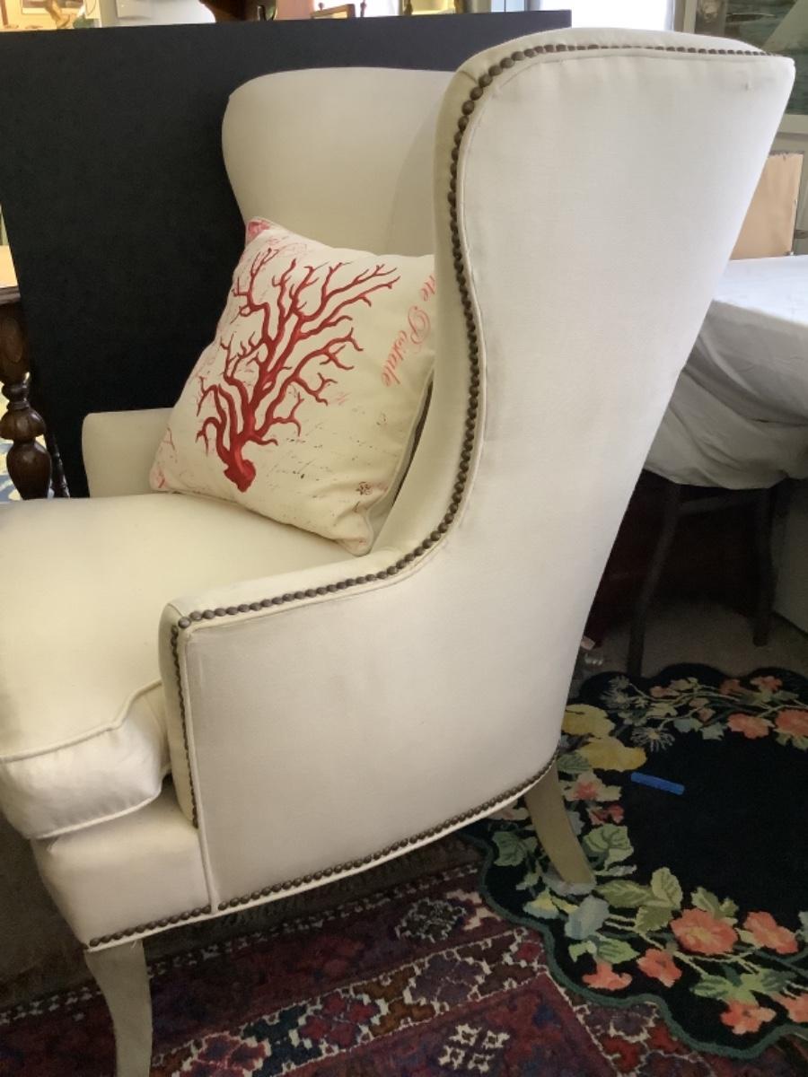 Off-White Upholstered, Butterfly Wing Studded Arm Chair -