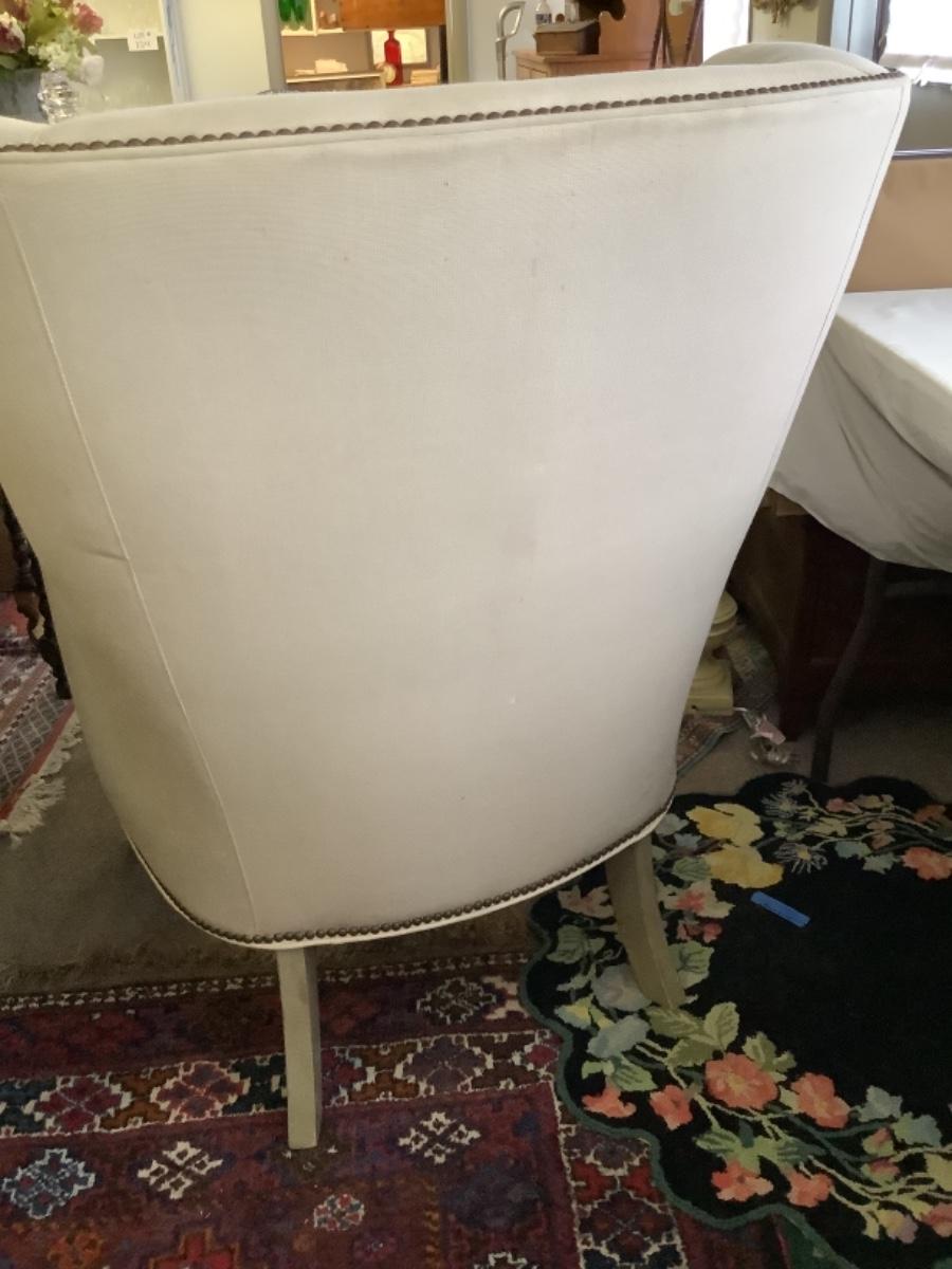 B - 131. Off-White Upholstered,Butterfly Wing  Studded Arm Chair