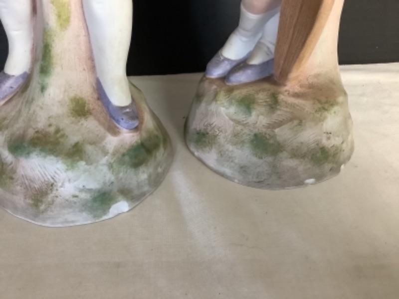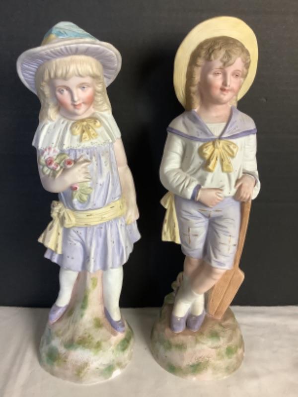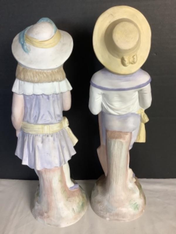 Boy figurine measures 15” high and girl measures 14” high, both have a small chip at the base (see photos)