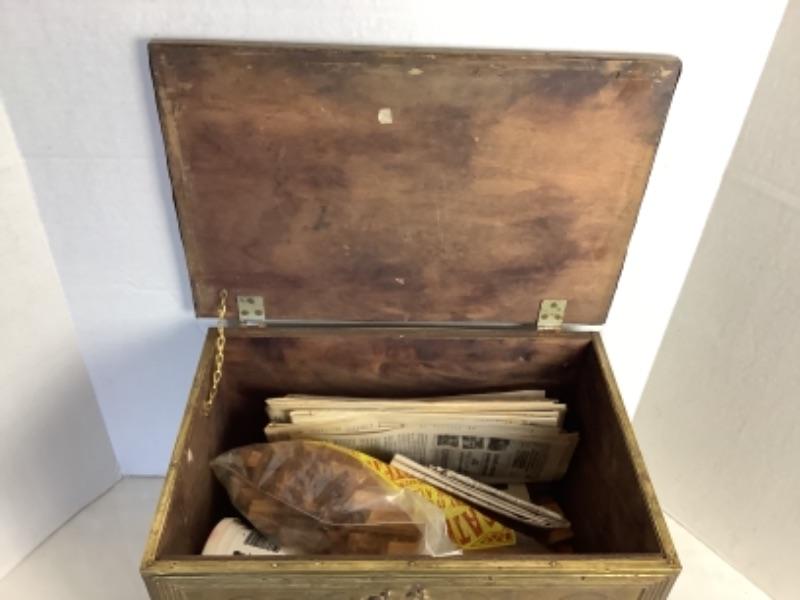 Box measures 16-1/4” x 10-3/4” x 11” high, has some minor damage (see photos). Includes contents of box