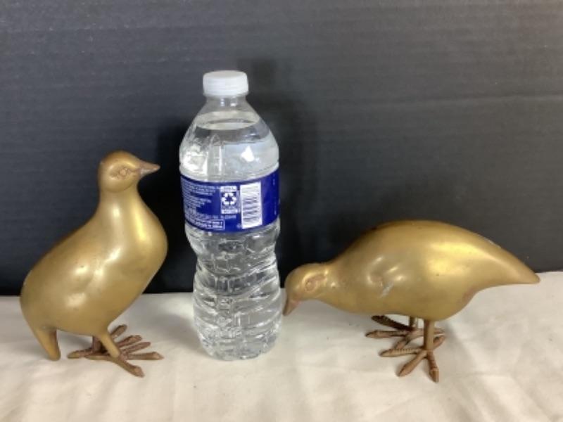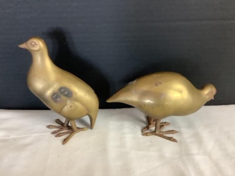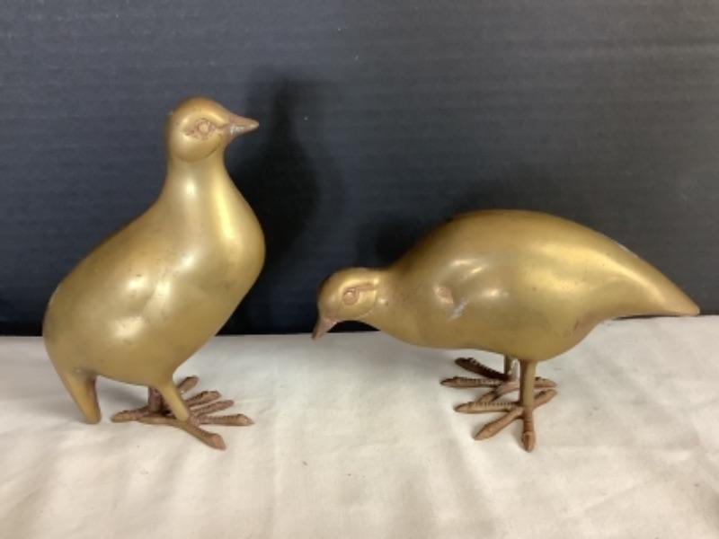 Pair of brass bird figures one measures 6-1/2” x 3-1/2” and one measures 4-1/2” x 7-1/4”.