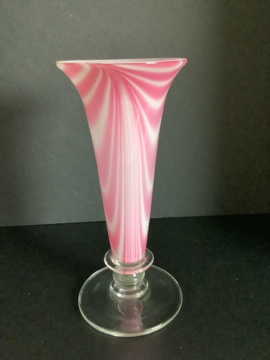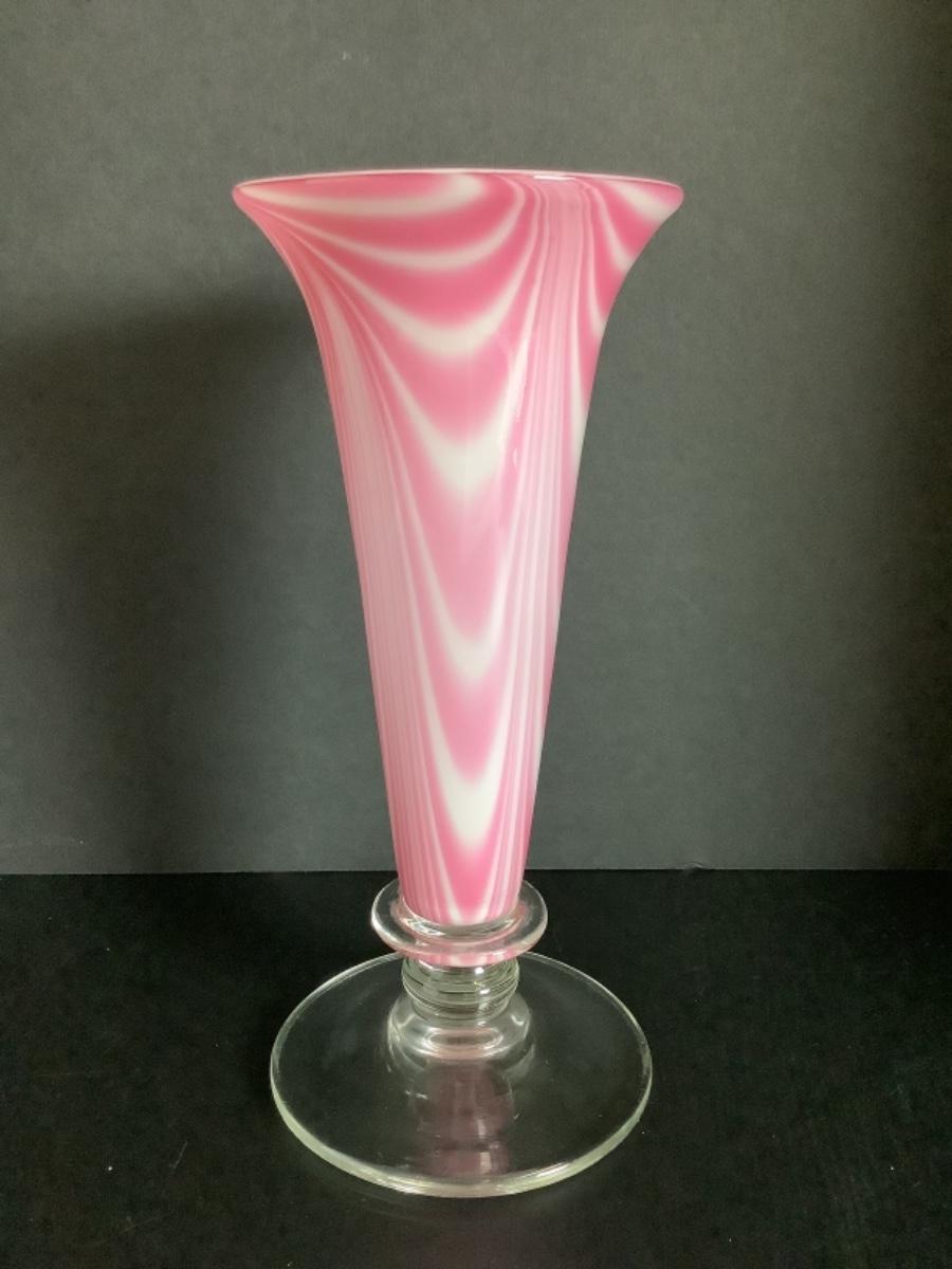 The lovely opaque white flared vase measures 10.25” High x 4.5” Round @ top