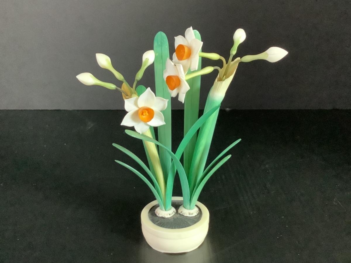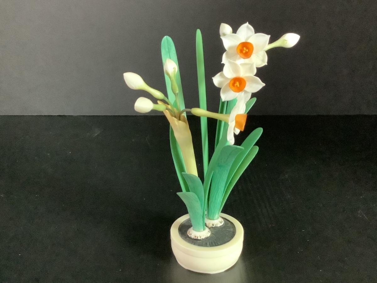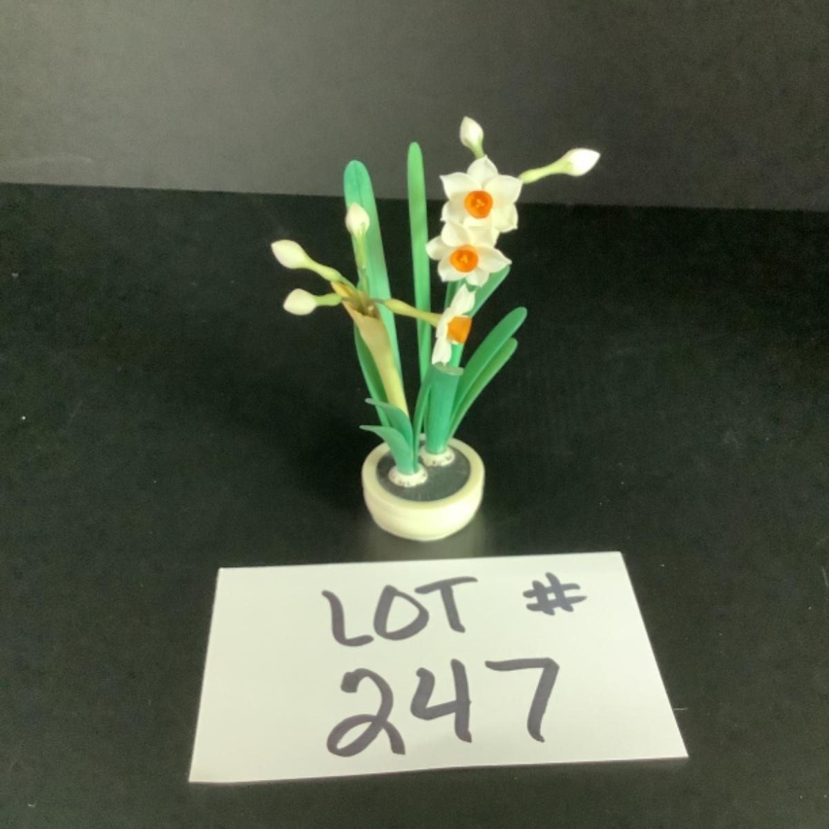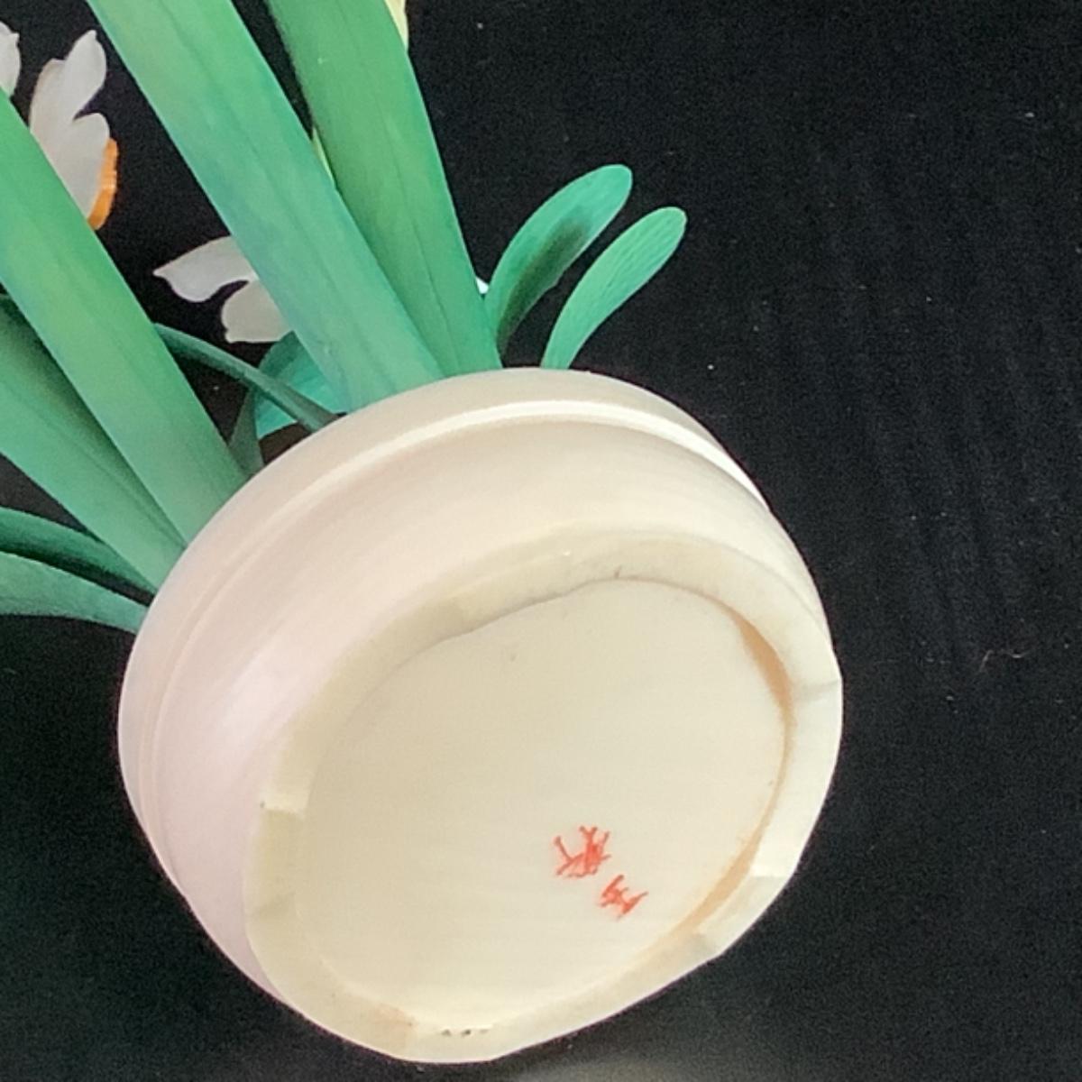 B - 247 Vintage Miniature Chinese Ox Bone Floral Decor