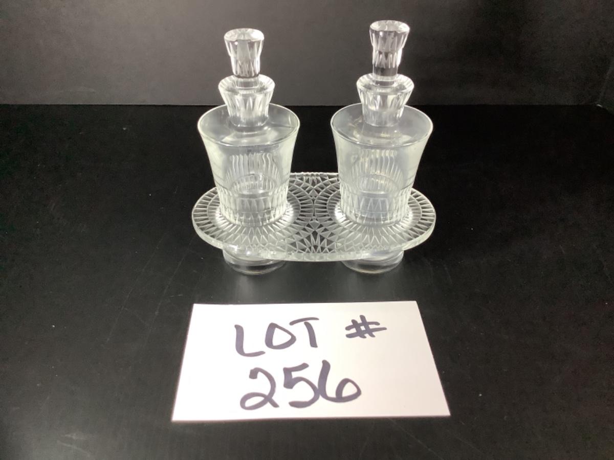 B - 256. Vintage Lalique Bourgueil Oil & Vinegar Cruet Stand