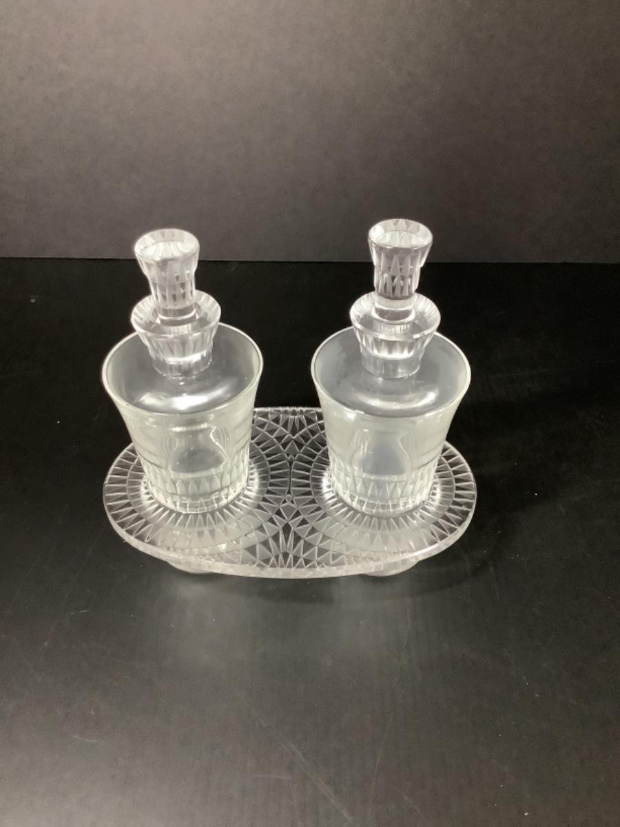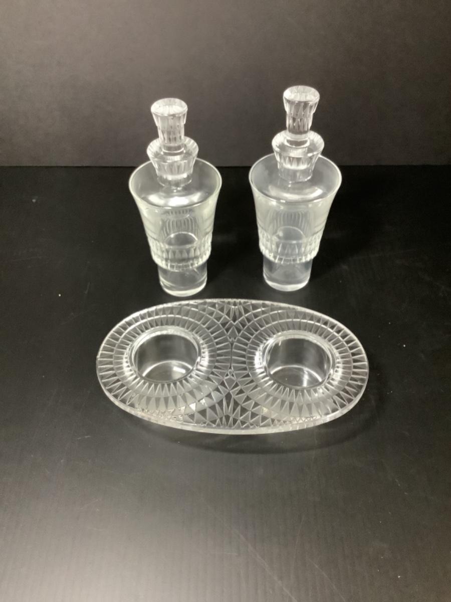 Vintage Lalique Oil & Vinegar Cruet Stand , Bourgueil pattern