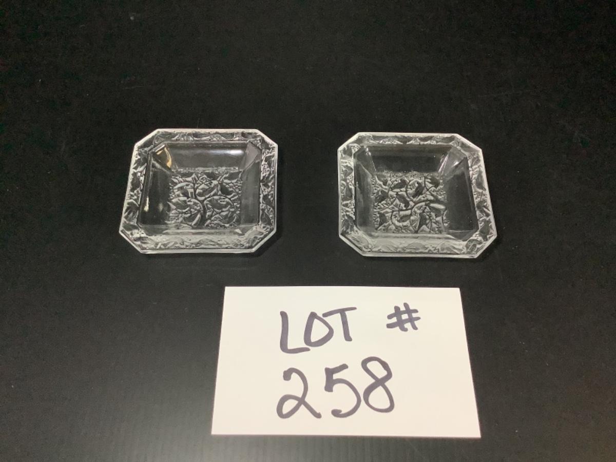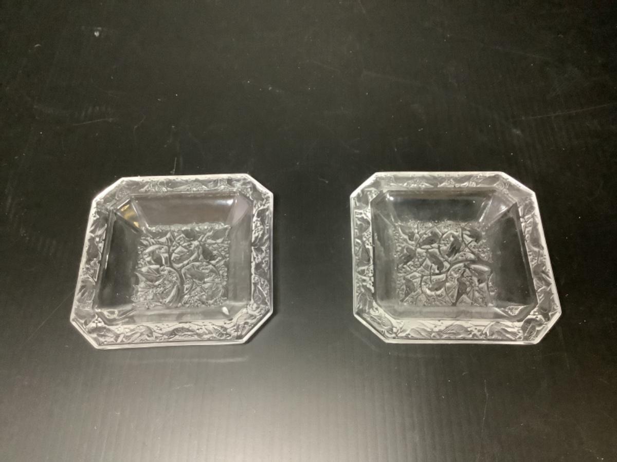 Pair of Vintage Rene Lalique “ Anna “ Tree of Life with Birds, Square Pin Dishes ,