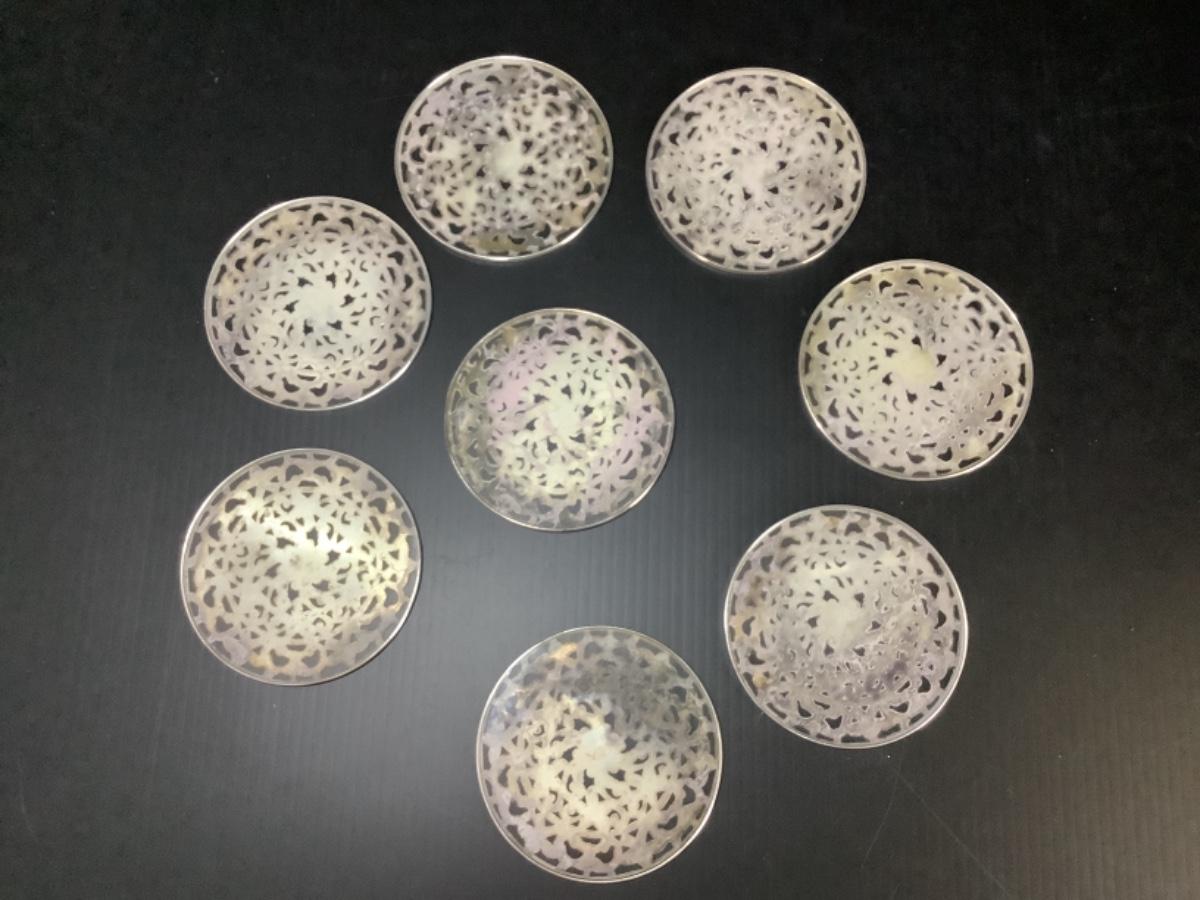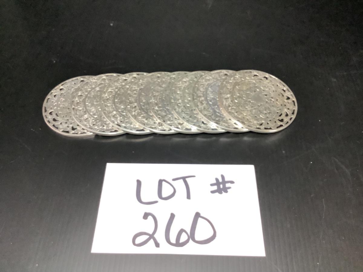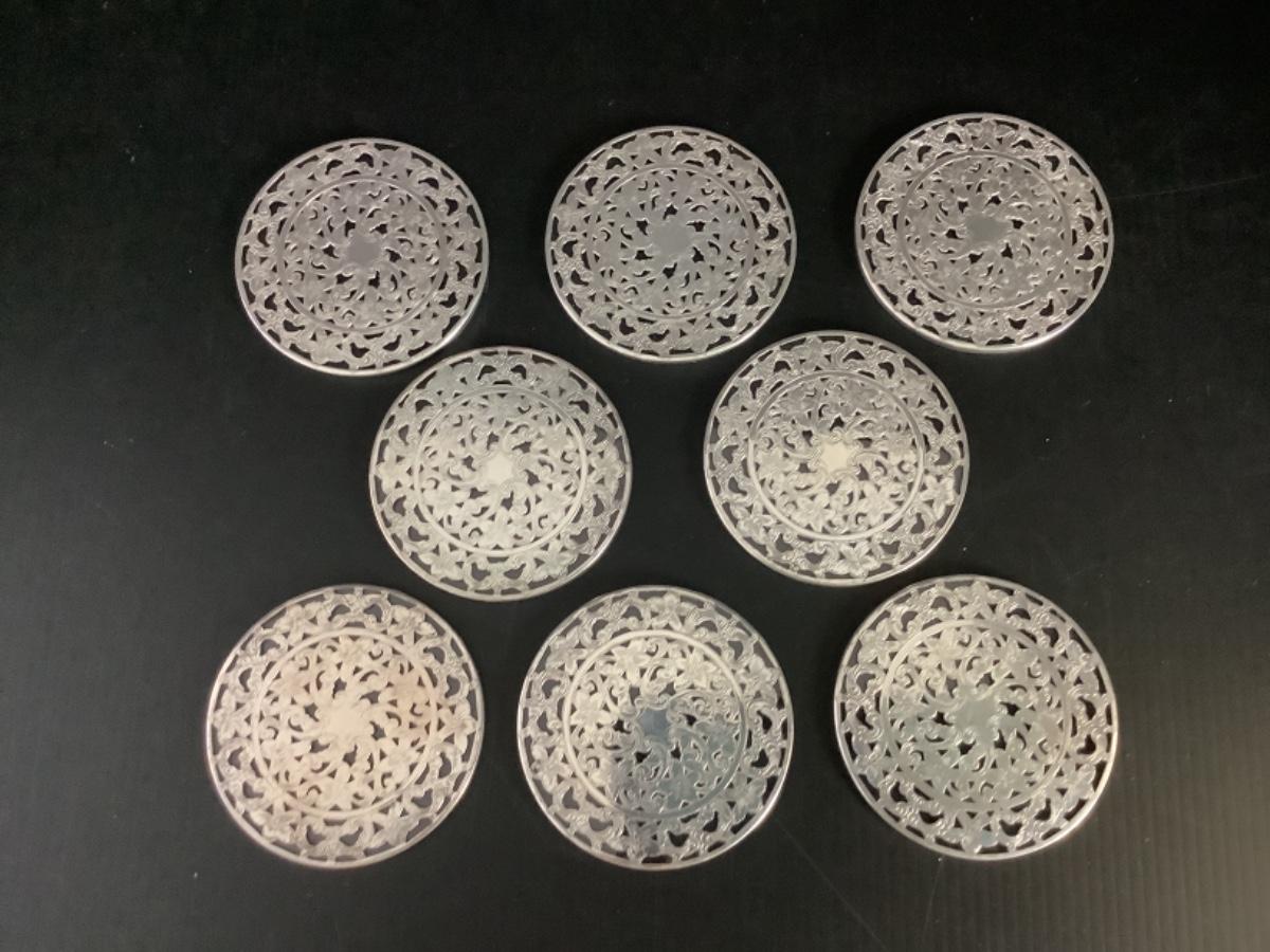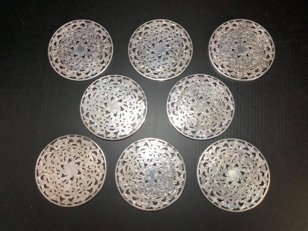 B - 260 Vintage Webster's Sterling Silver Overlay Glass Coasters