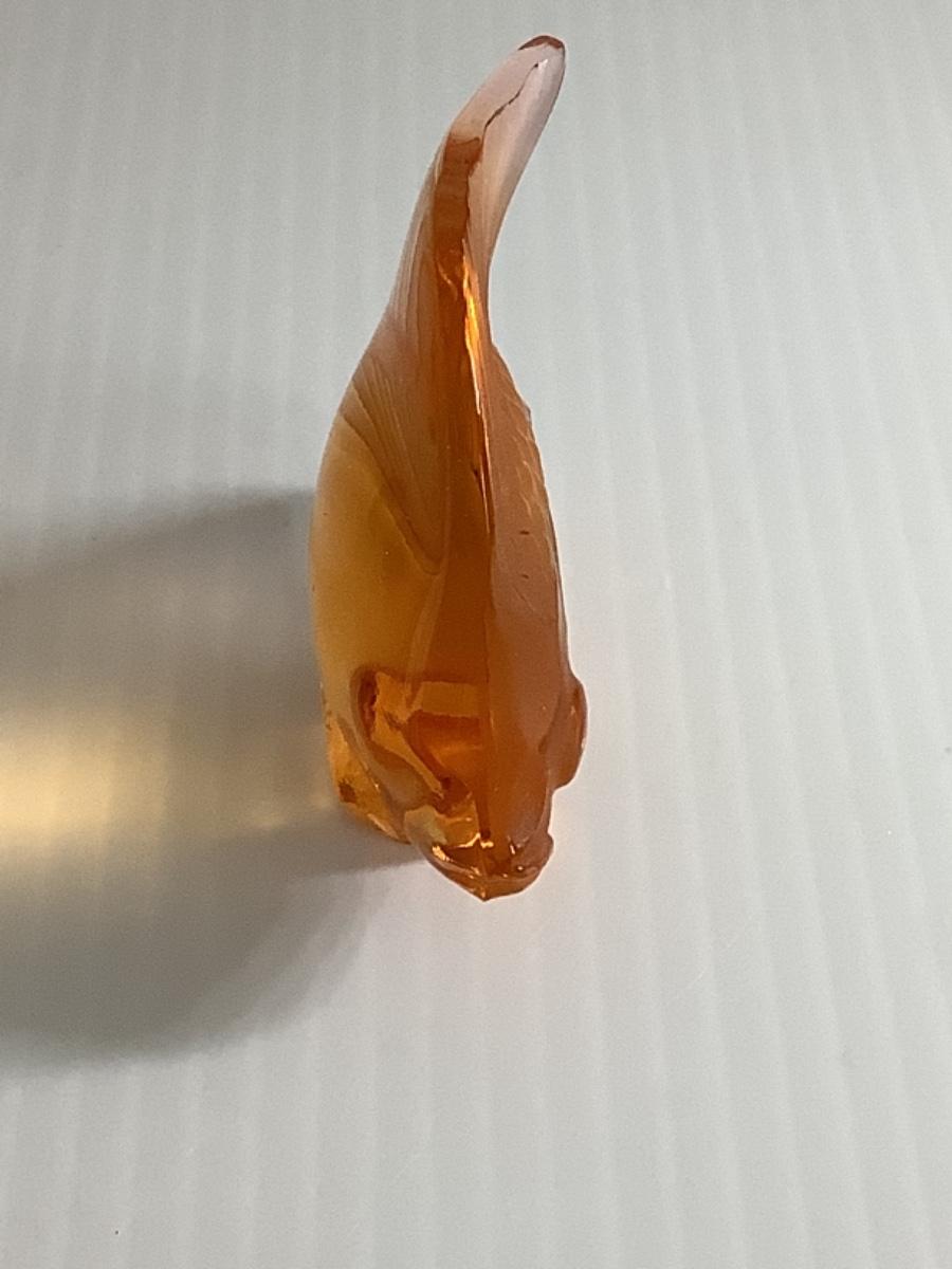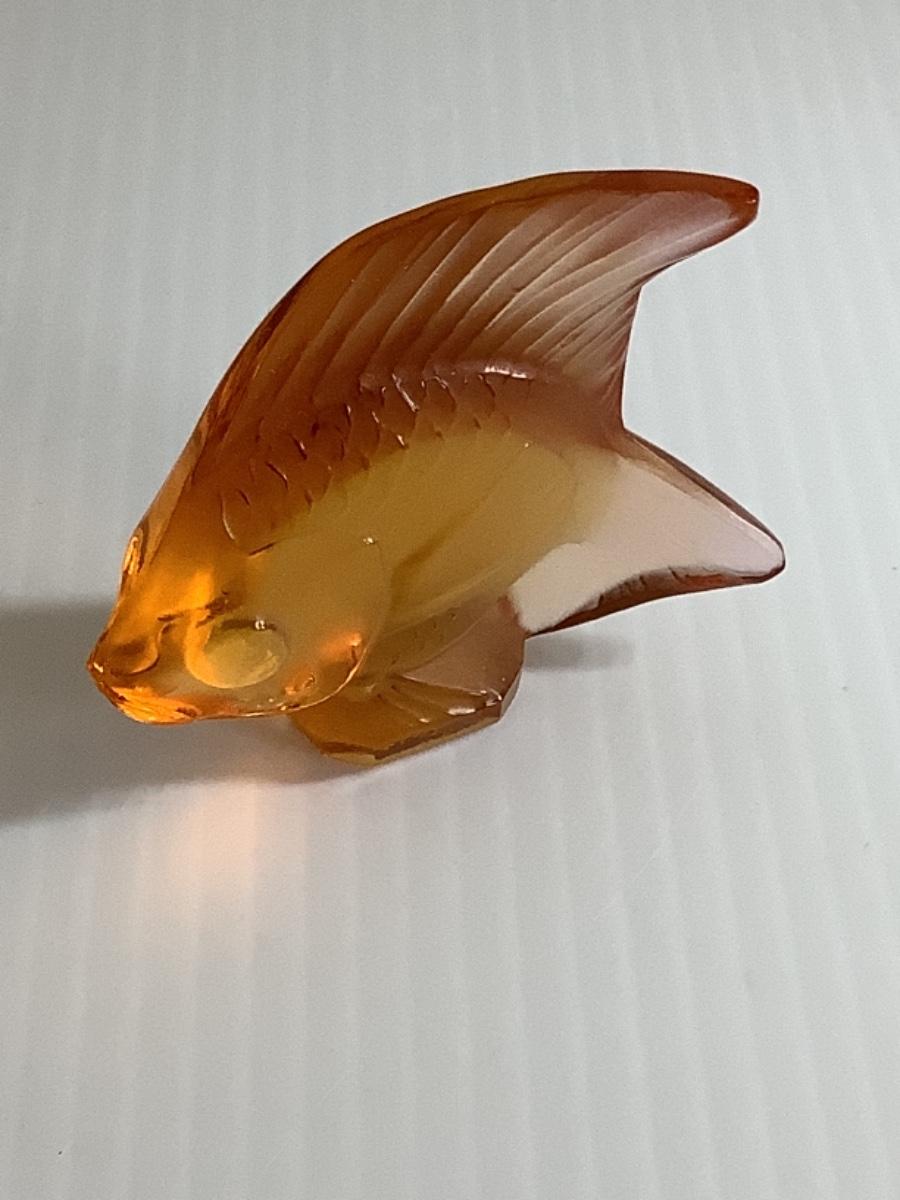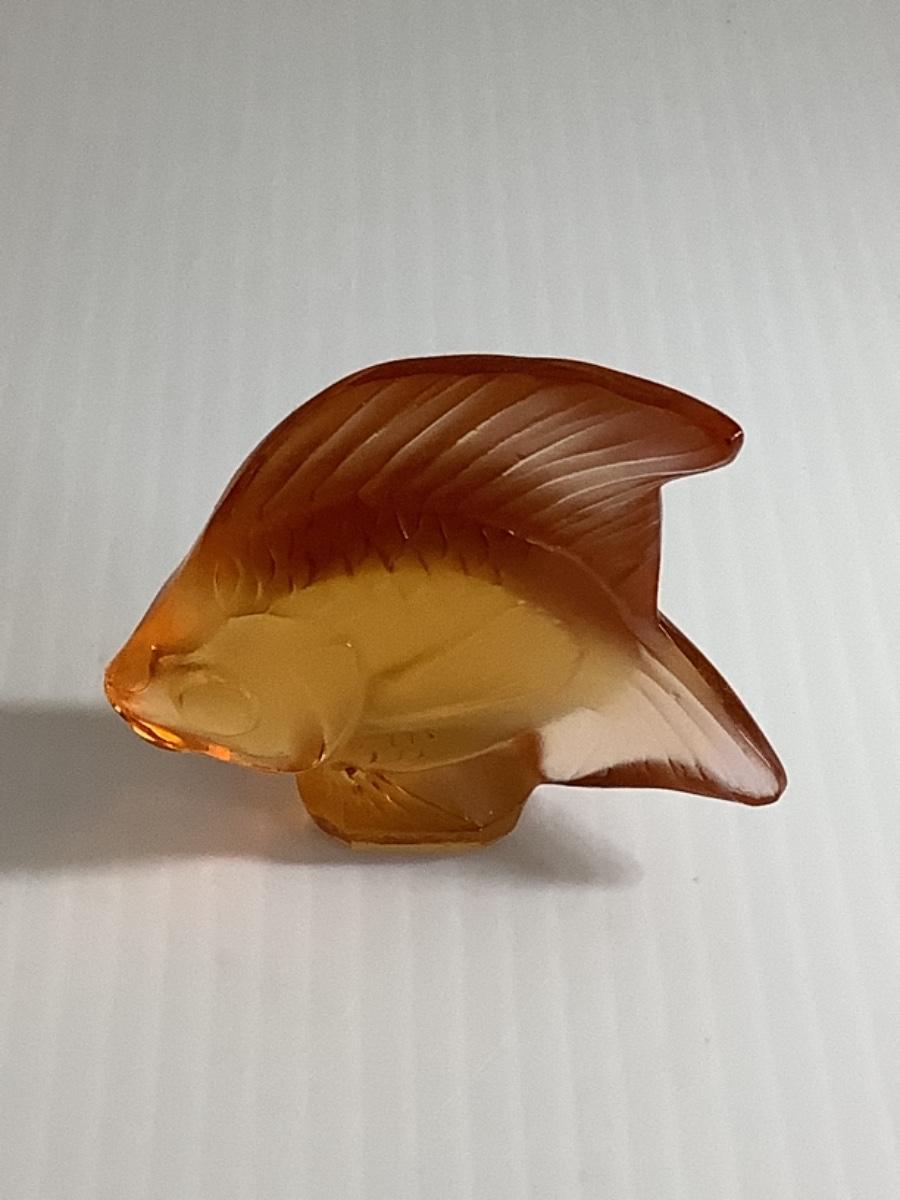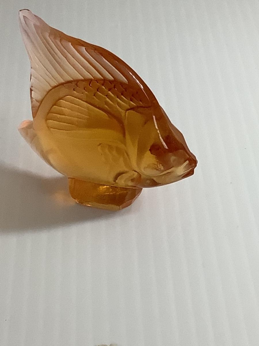 B - 265 Signed Vintage French Lalique Amber/Orange Crystal Fish Sculpture