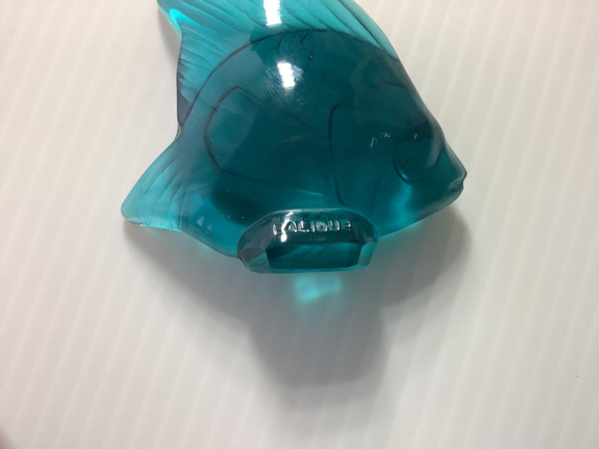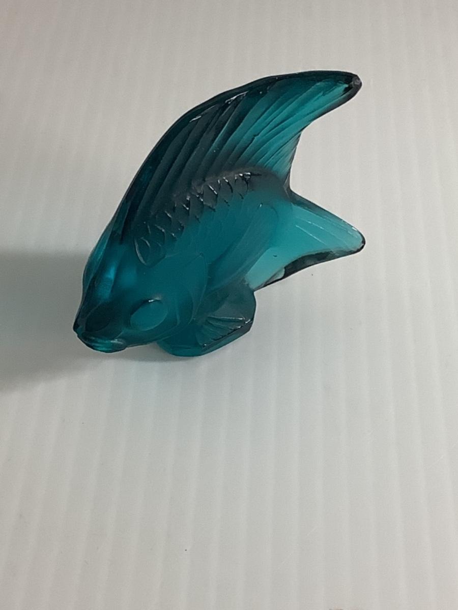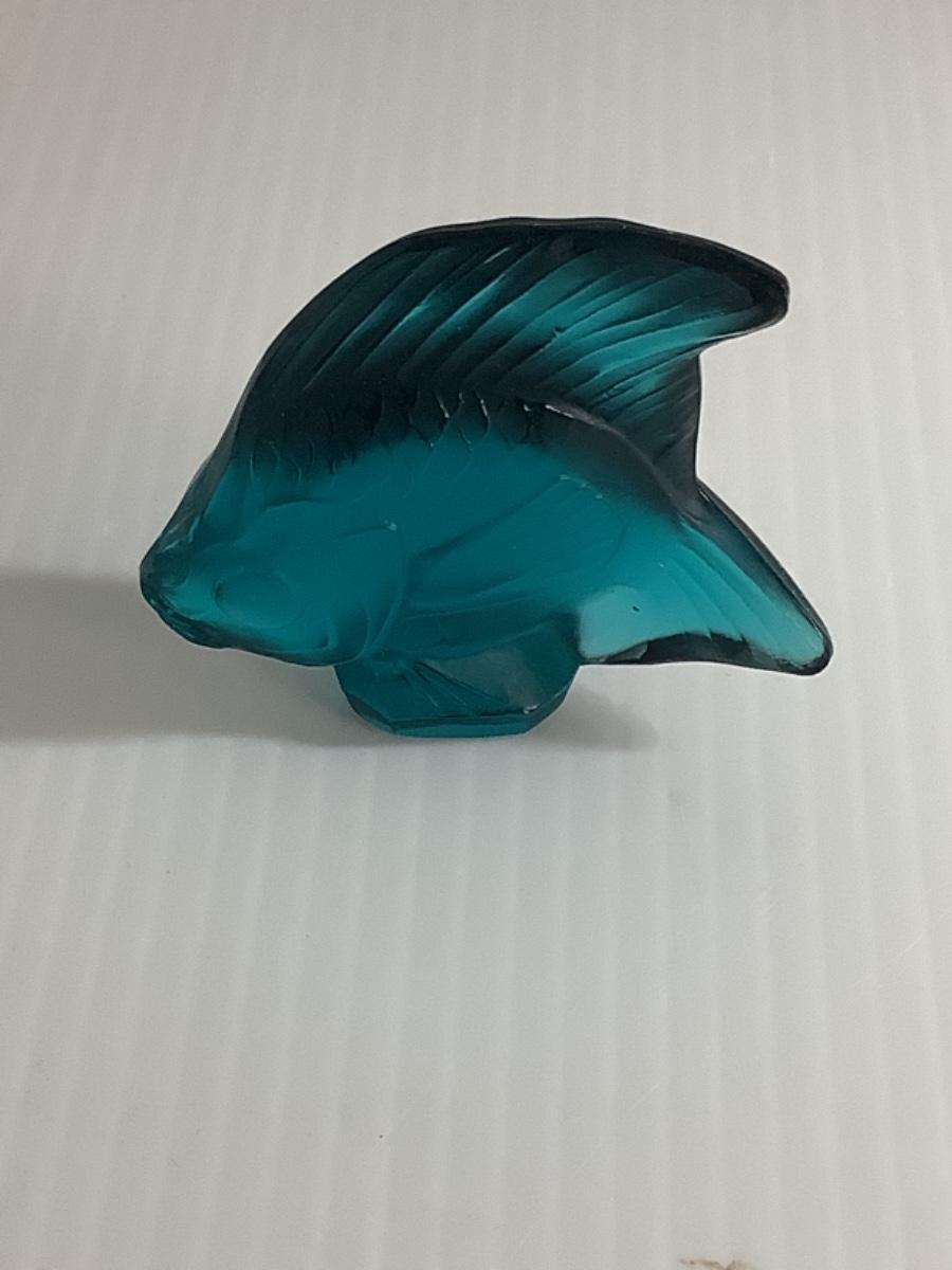 Signed, Vintage French Lalique Teal Crystal Fish Sculpture