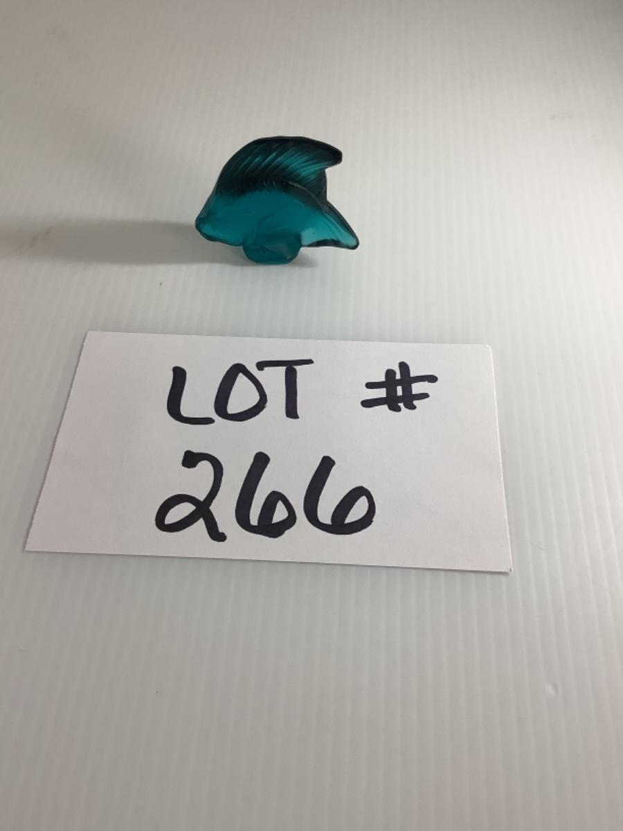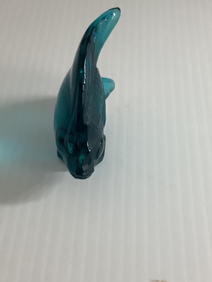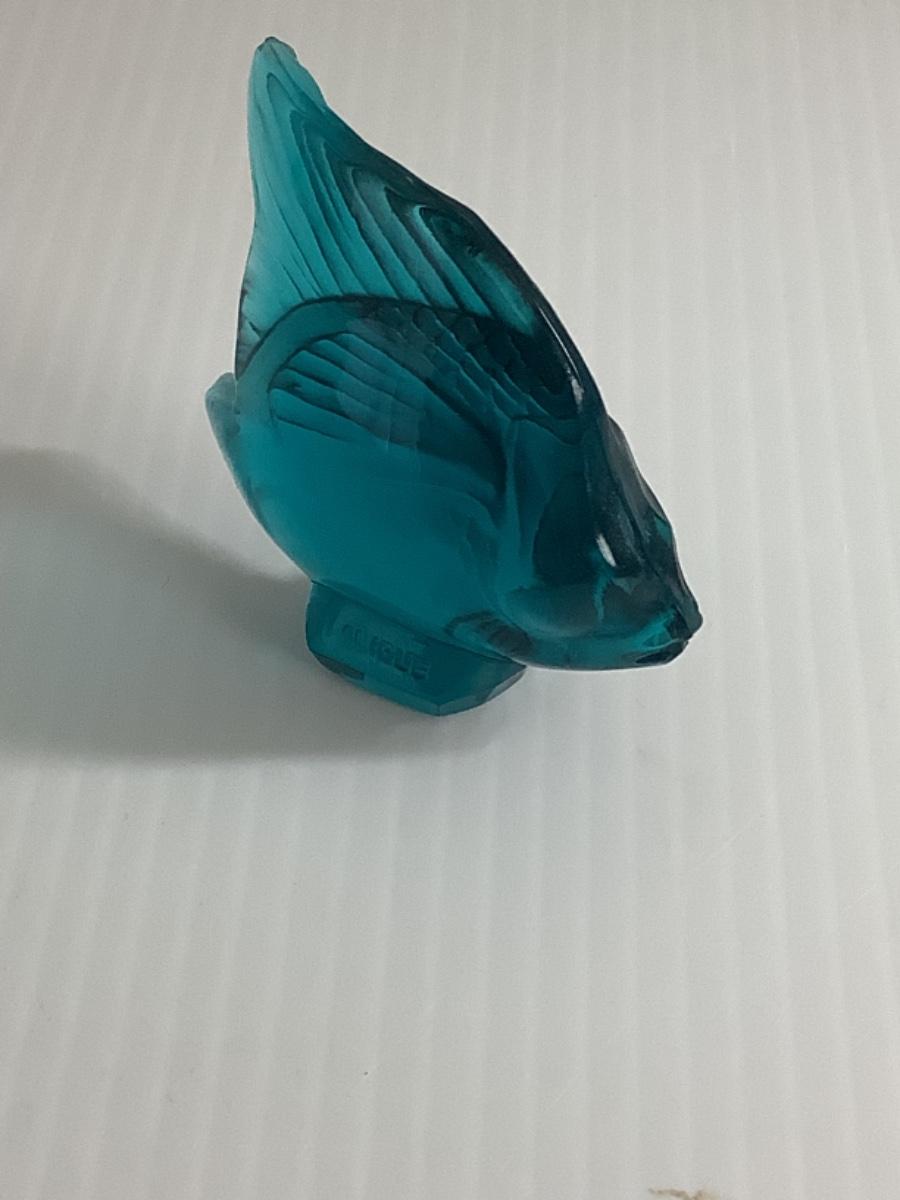 B - 266 Signed, Vintage French Lalique Teal Crystal Fish Sculpture