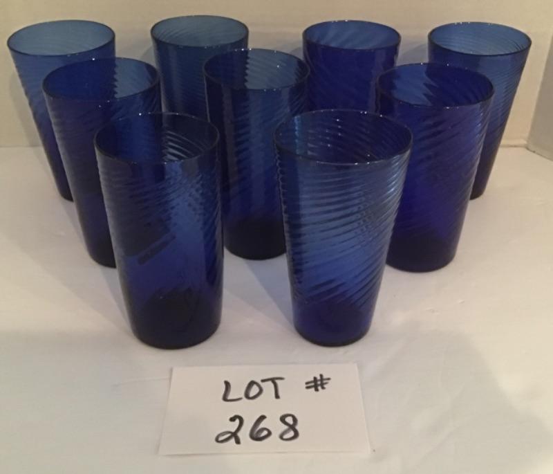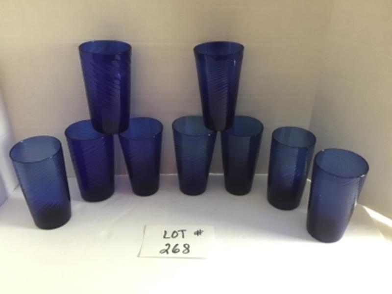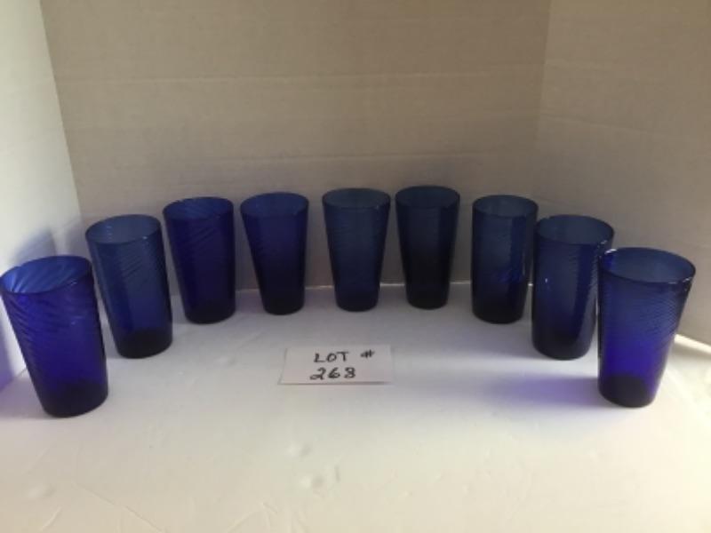 B - 268. Set of hand blown Blue Glass Water Glasses