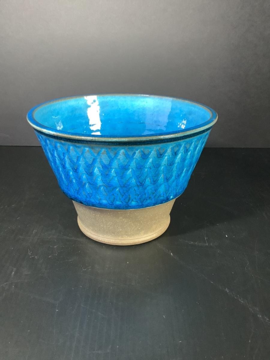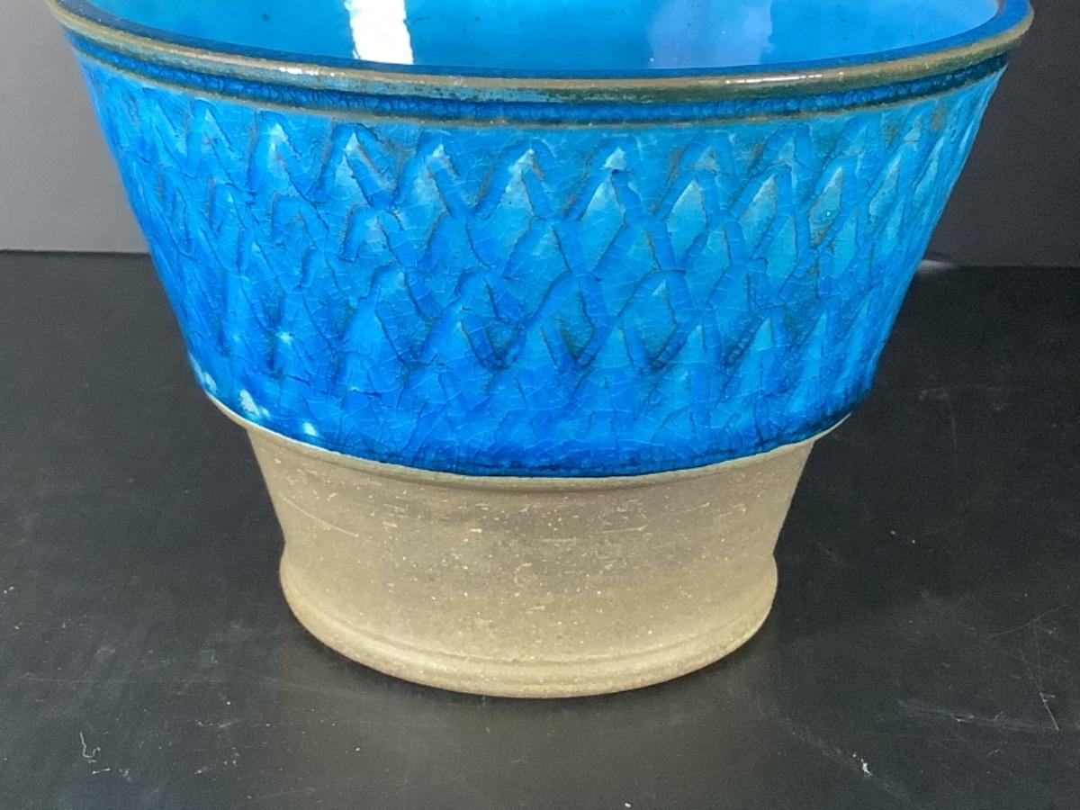 Partially glazed, with incised pattern to the body with glossy Turquoise Glaze, 1950-60