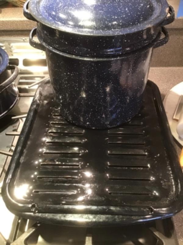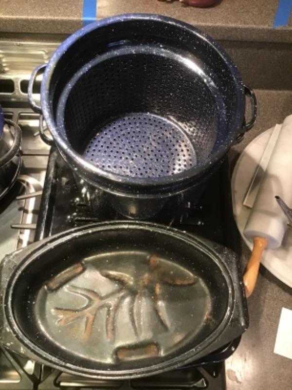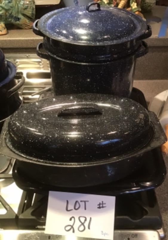 B - 281 Vintage Enamel Roasting Pan & Stock Pot