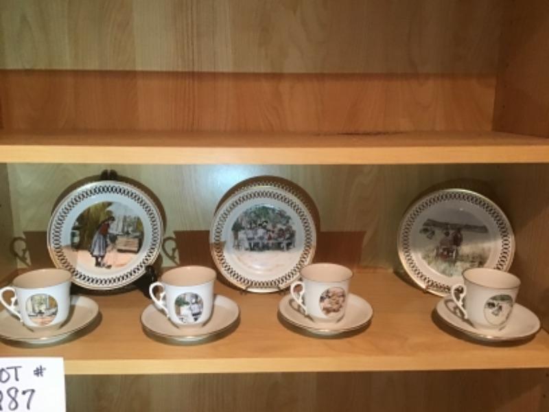 8 Antique Copenhagen Porcelain Demitasse with Reticulated Plates