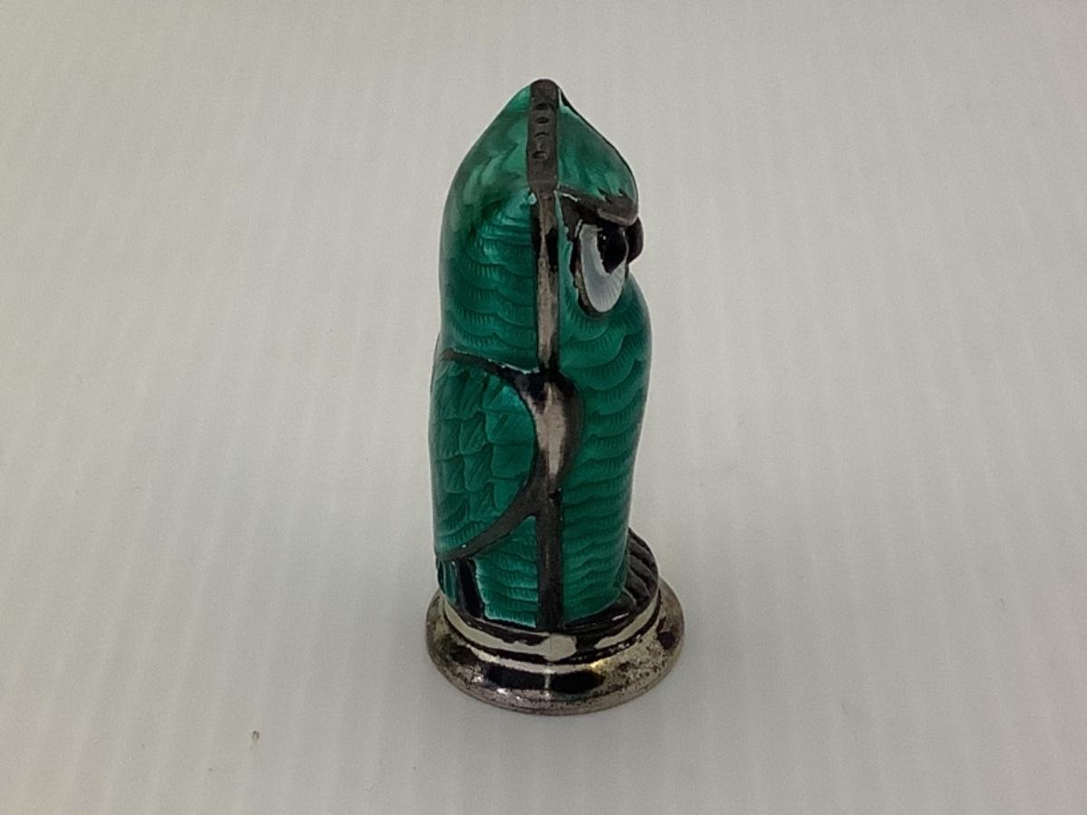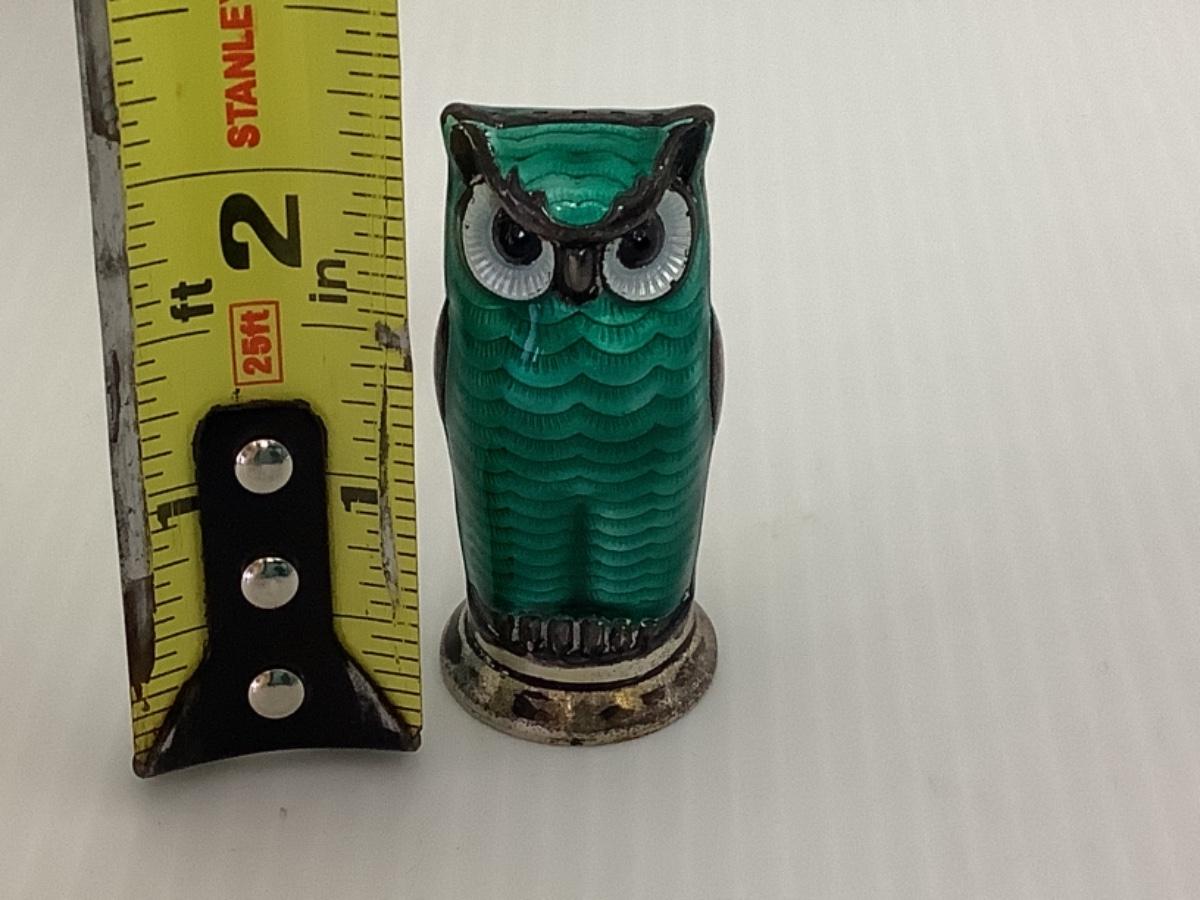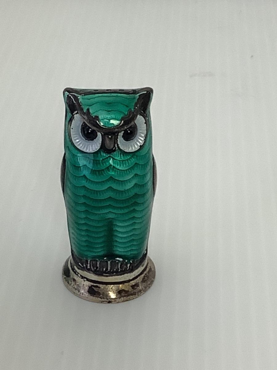 B - 287. David Andersen, Norwegian Sterling Silver/Enamel Novelty Owl Salt or Pepper Shaker