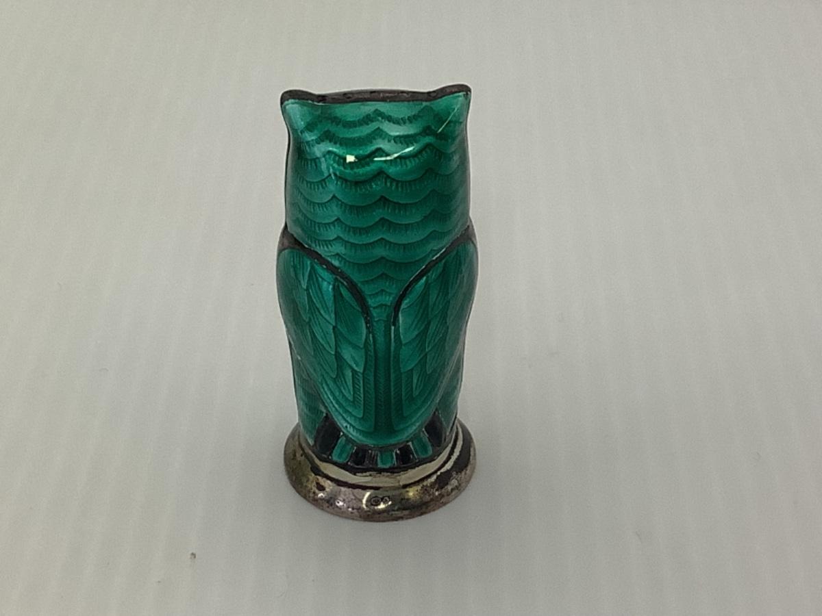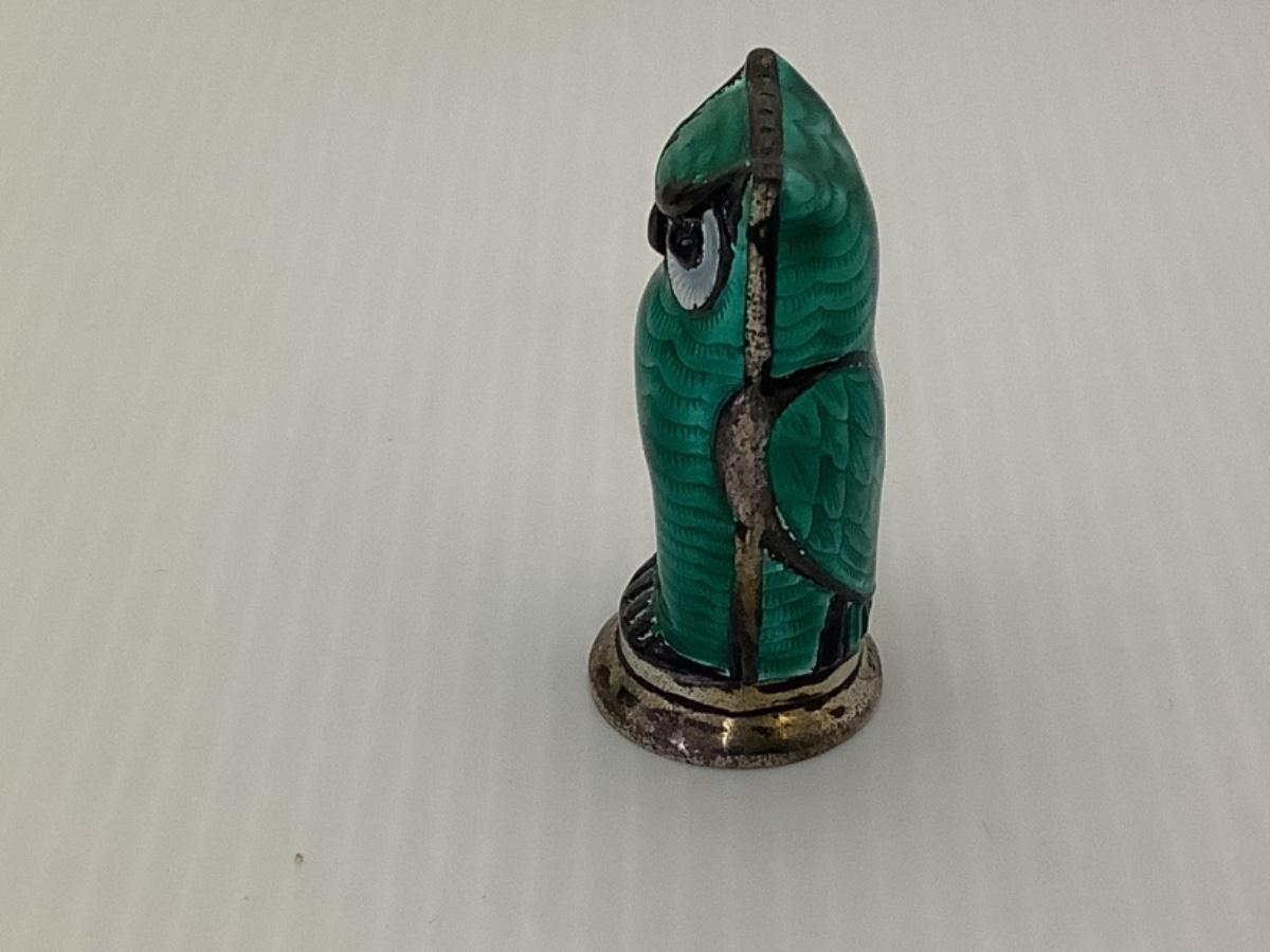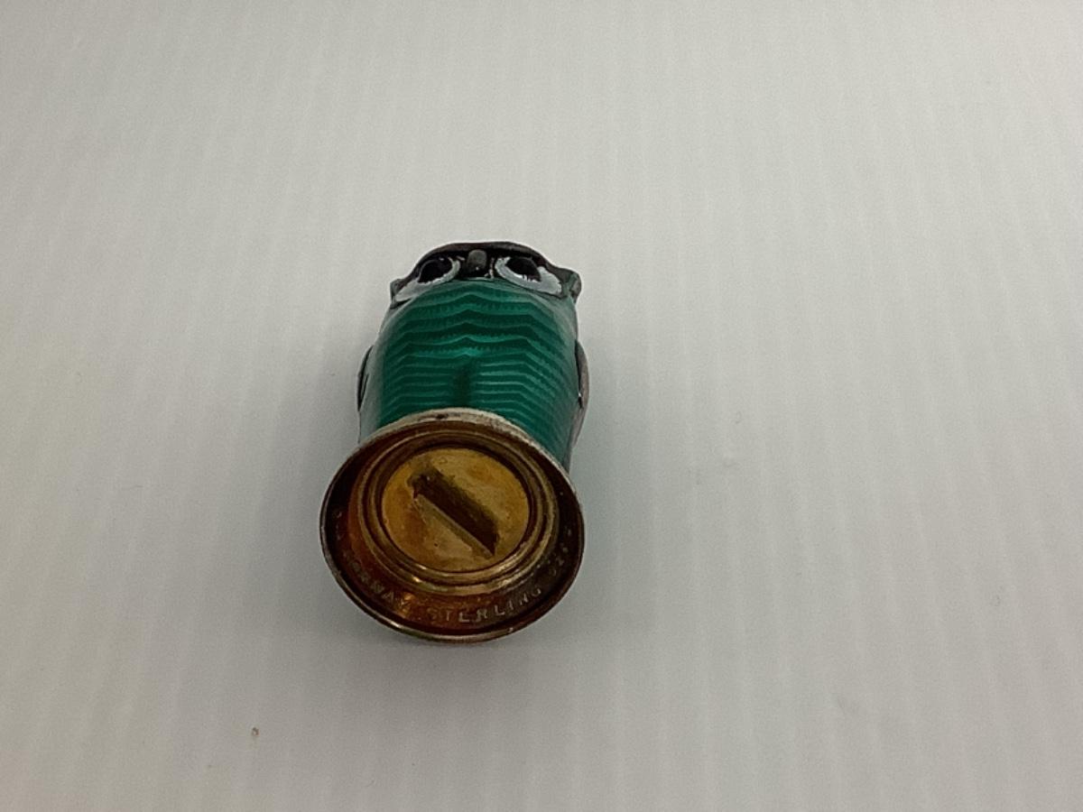 B - 287. David Andersen, Norwegian Sterling Silver/Enamel Novelty Owl Salt or Pepper Shaker
