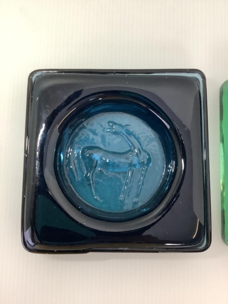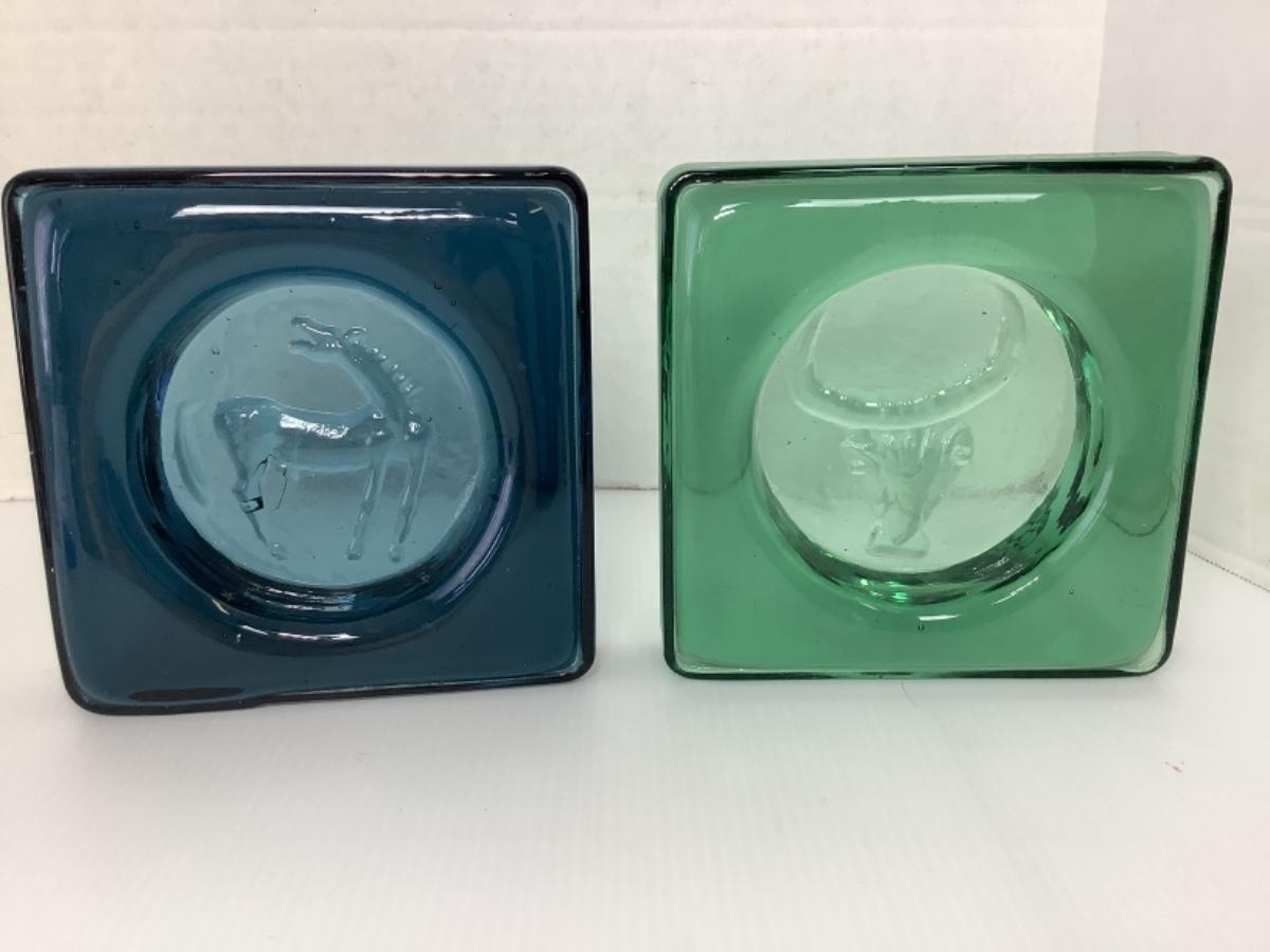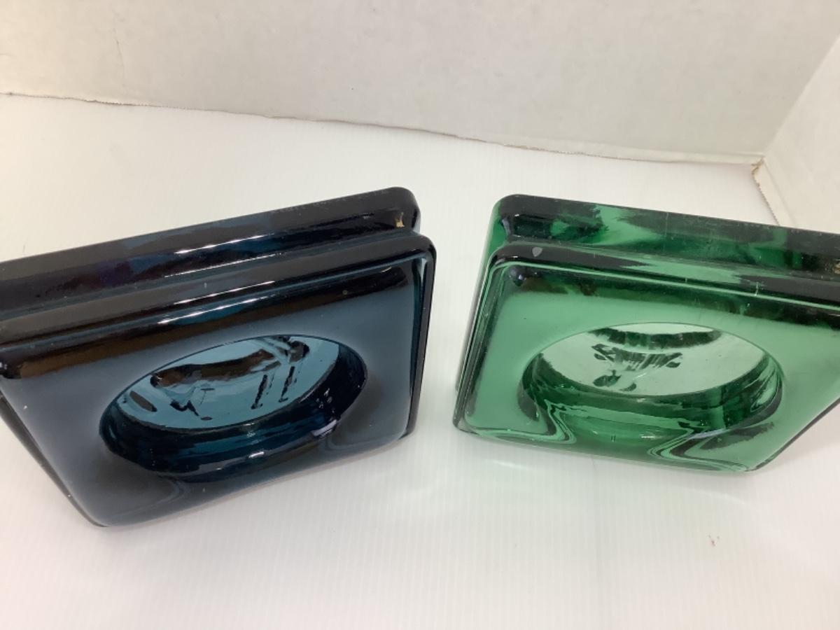 B - 290 Pair of Signed Vintage Blue & Green 1960’s Swedish Kosta Boda Glass Art by Erik Hoglund