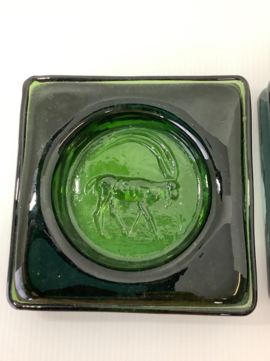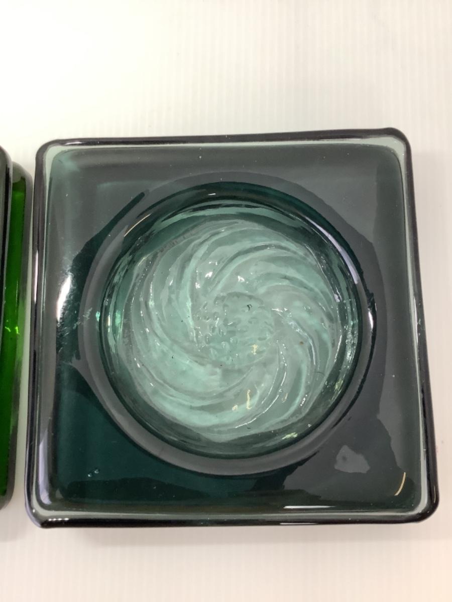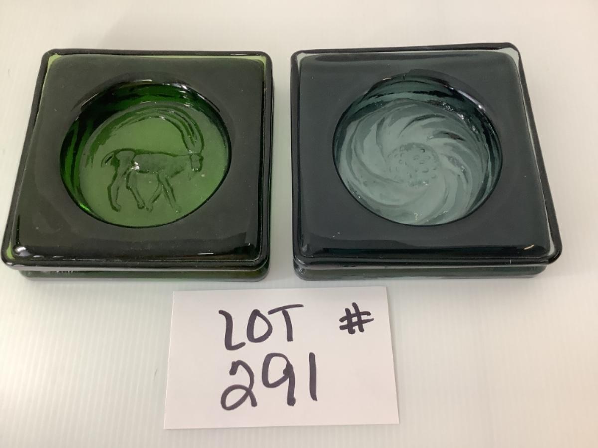 B - 291 Pair of Signed Vintage Gray & Green 1960’s Swedish Kosta Boda Glass Art by Erik Hoglund
