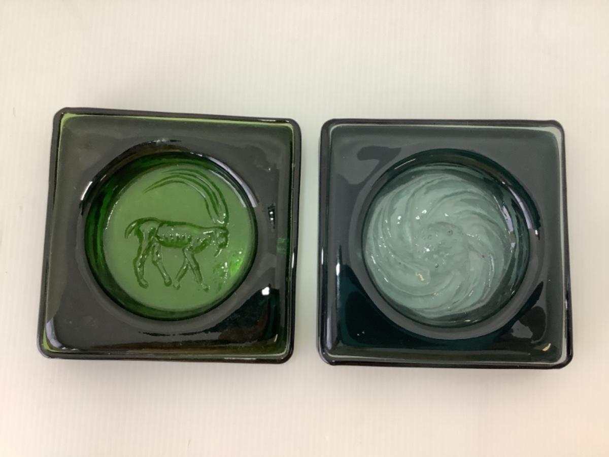 Pair of Signed Vintage Gray & Green 1960’s Swedish Kosta Boda Glass Art by Erik Hoglund