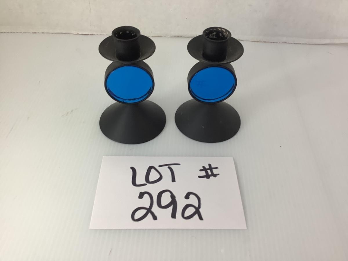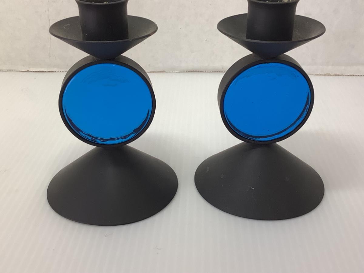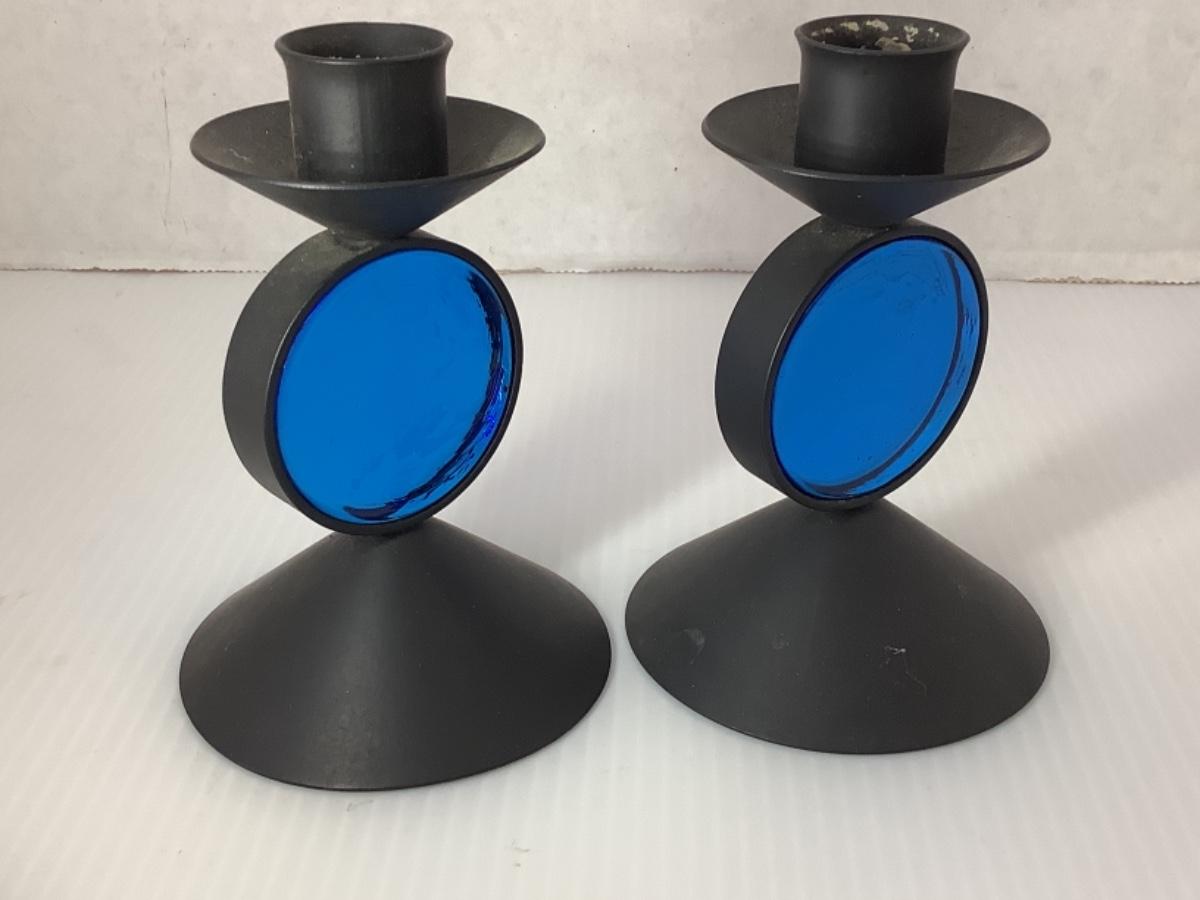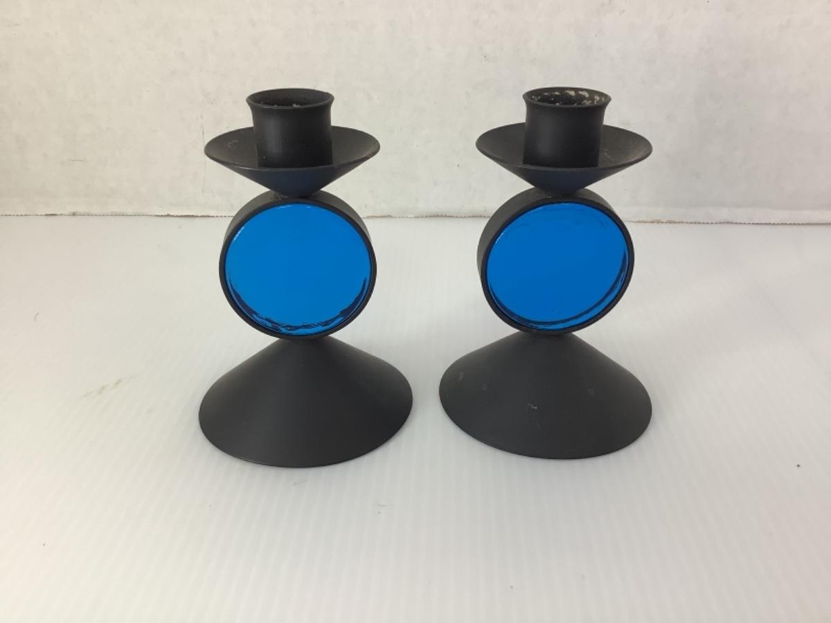 B - 292. Pair of Gunnar Ander Glass & Metal Candleholders