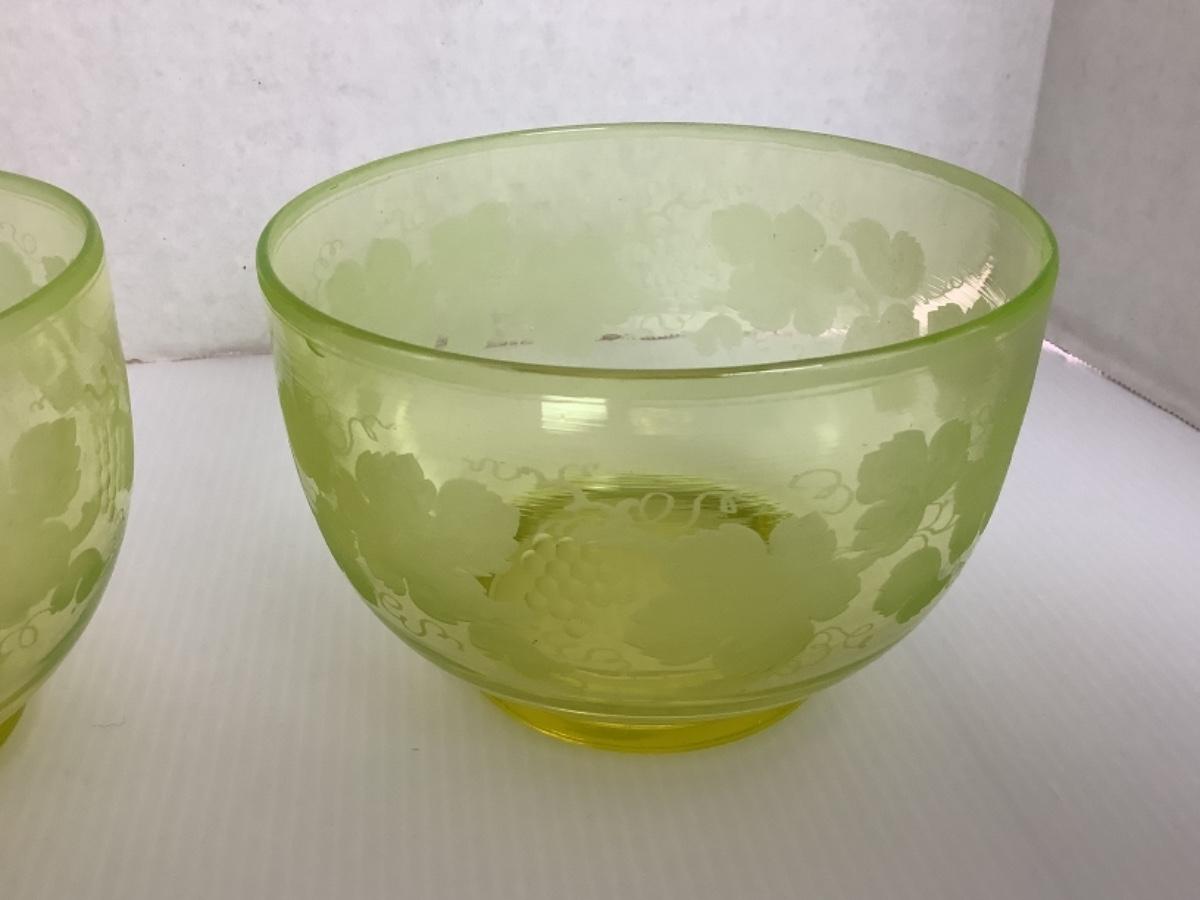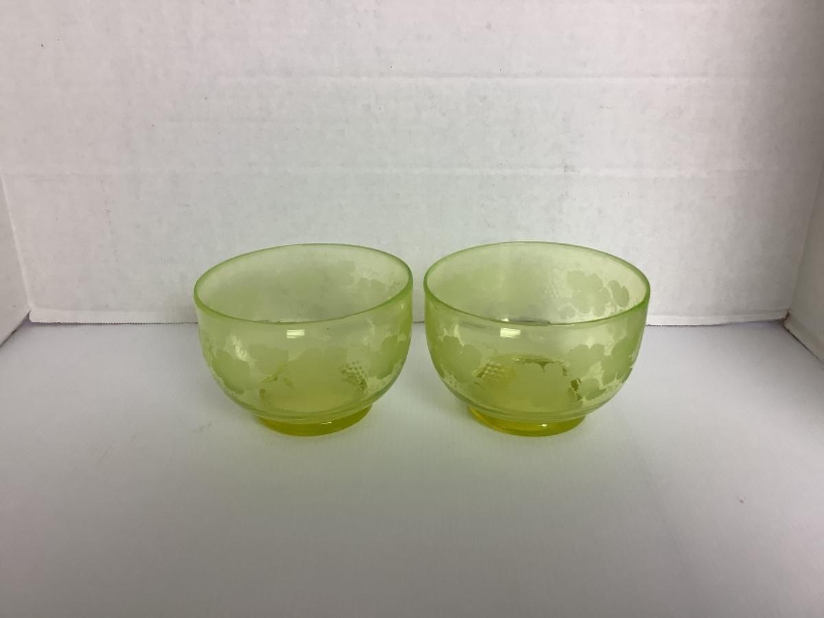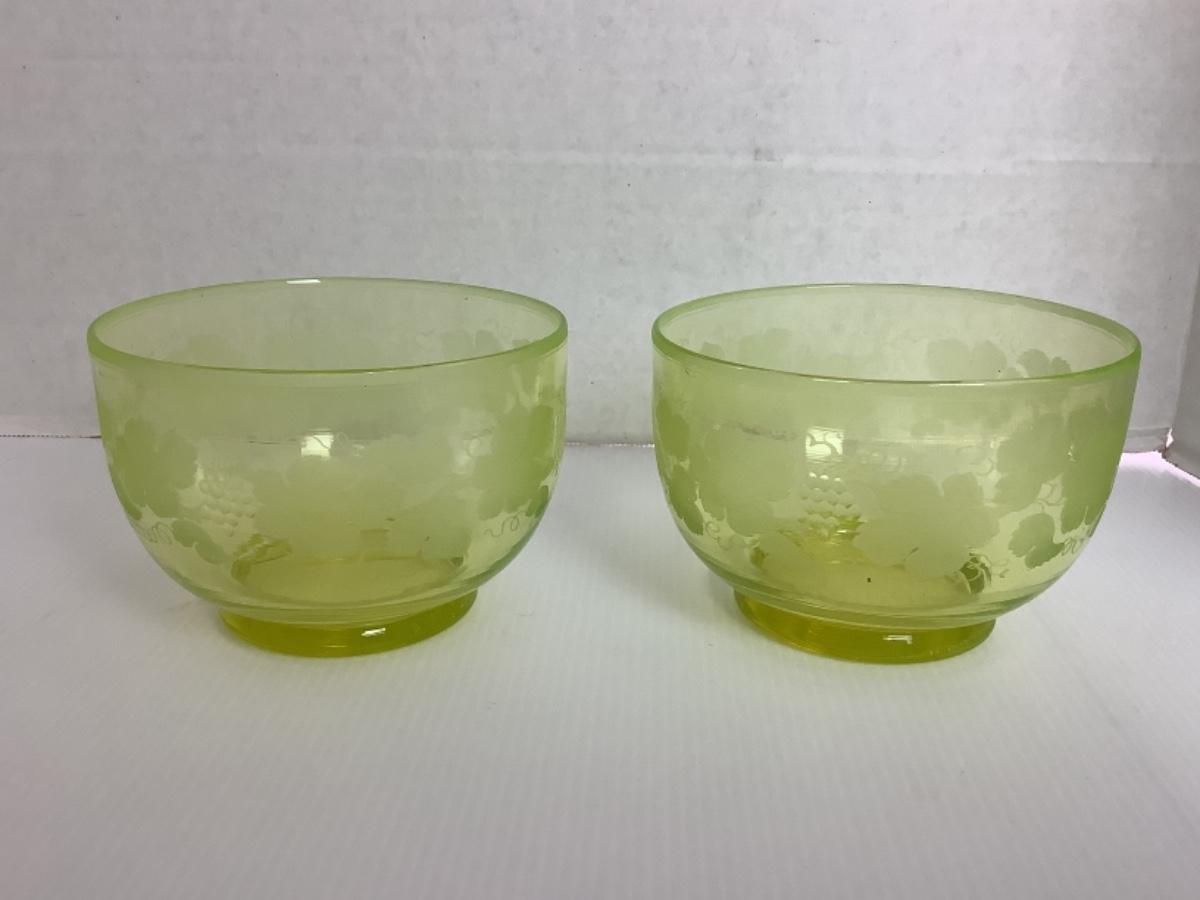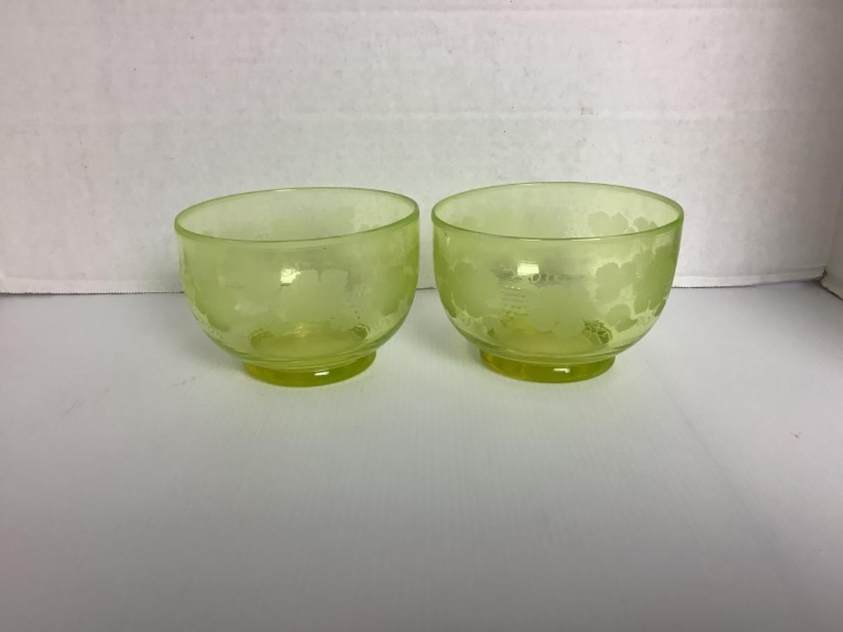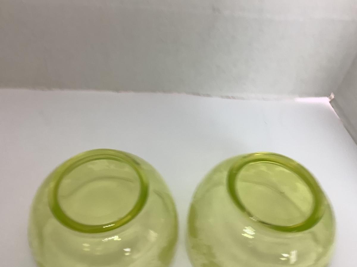 Pair of Vintage Green GLOW Uranium Vaseline Glass Bowls