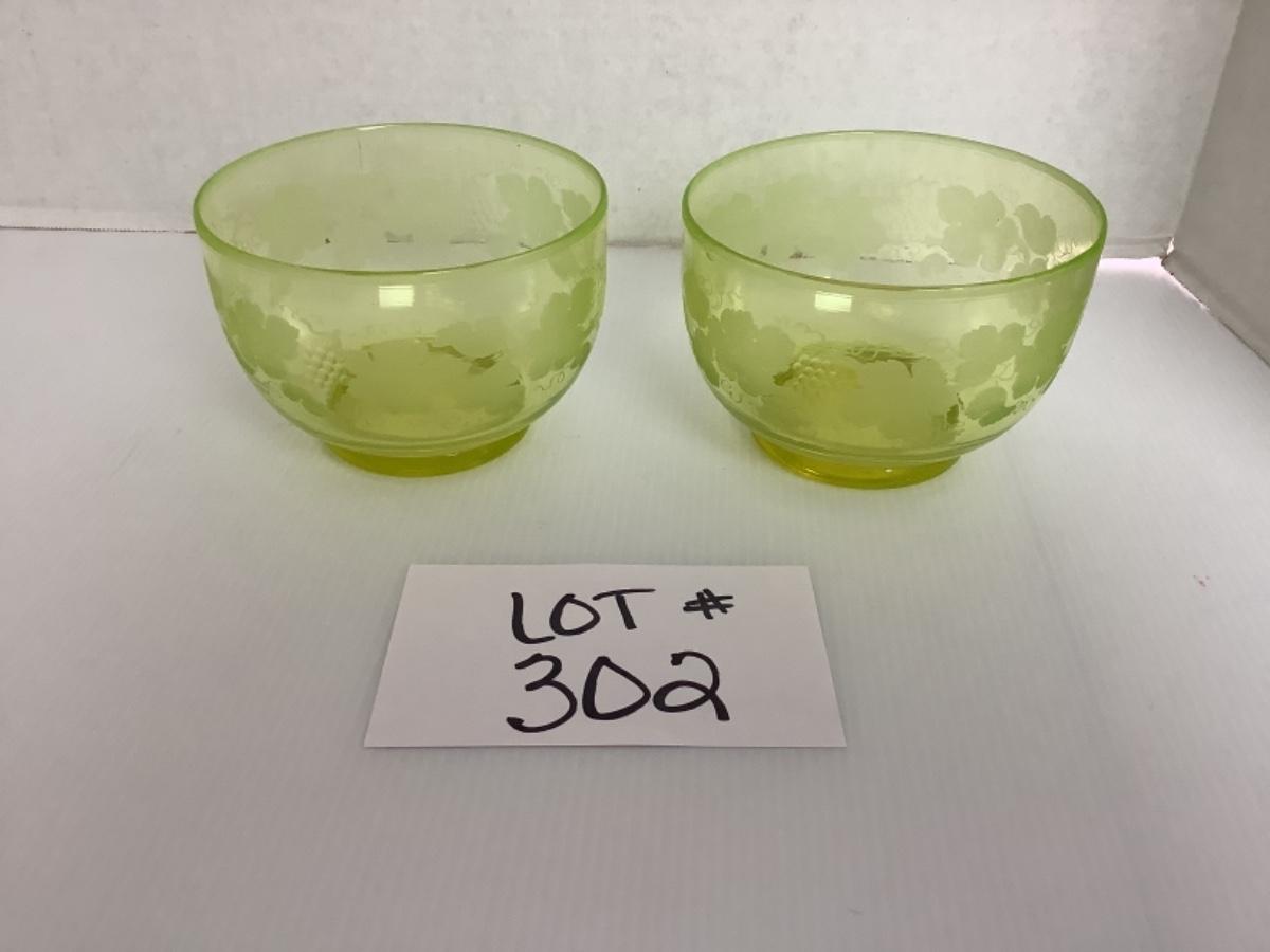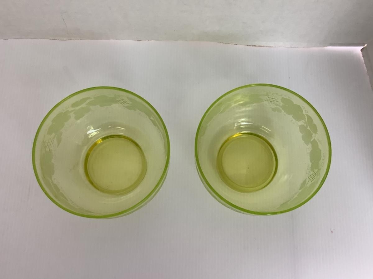 B - 302 Pair of Vintage Green GLOW Uranium Vaseline Glass Bowls