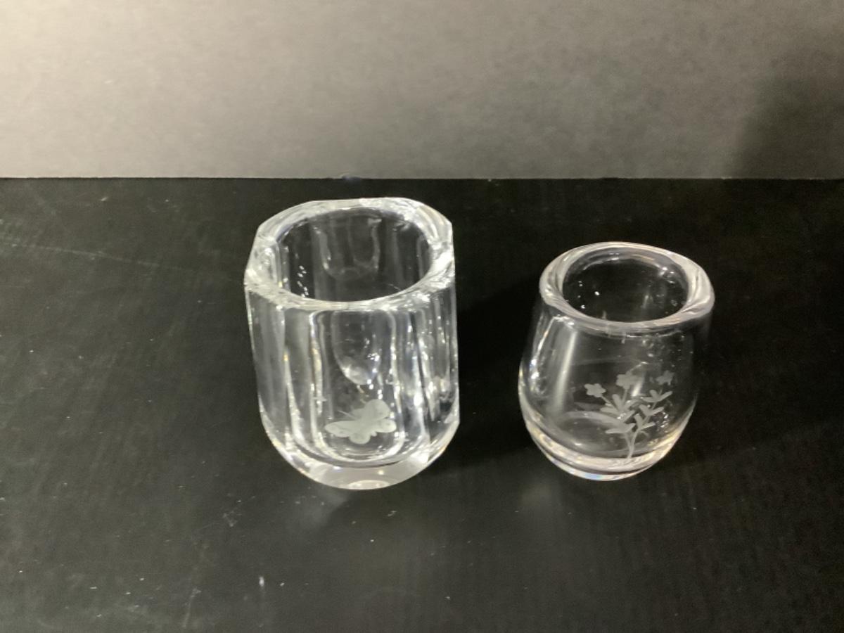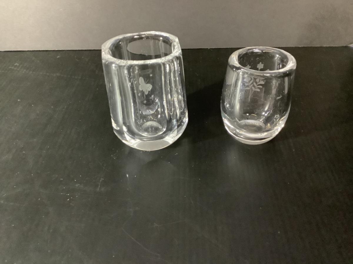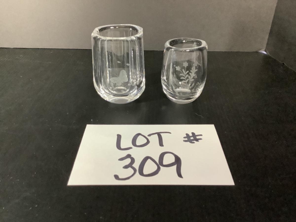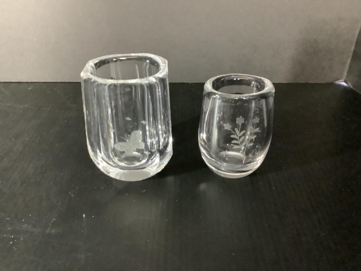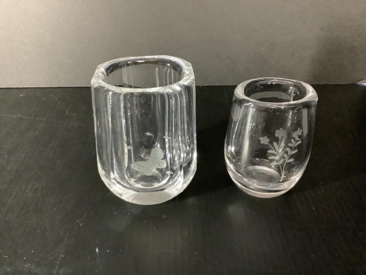 B - 309 Two Vintage Orrefors Small Crystal, Etched Vases