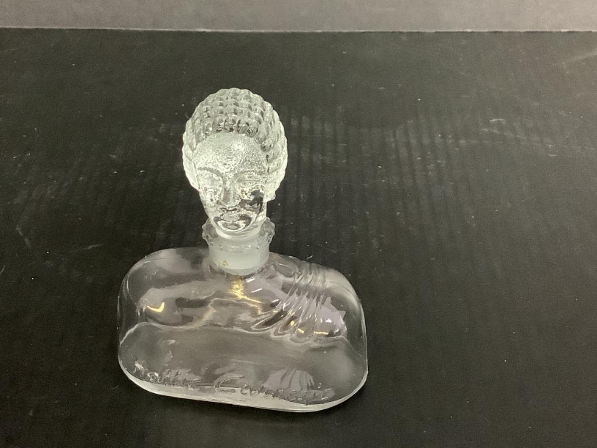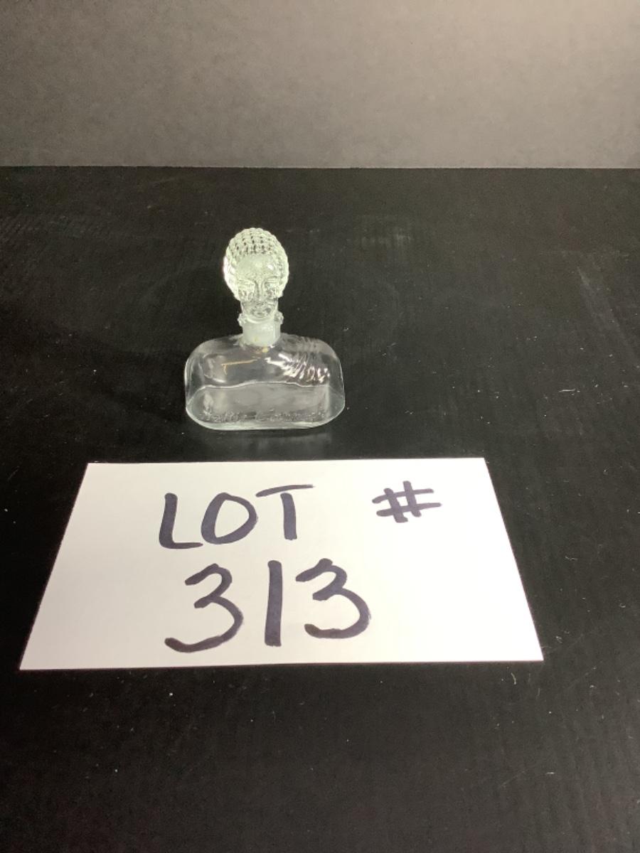 B - 313 Vintage Hattie Carnegie Mini Perfume Bottle Figural Lady in all Glass 1928