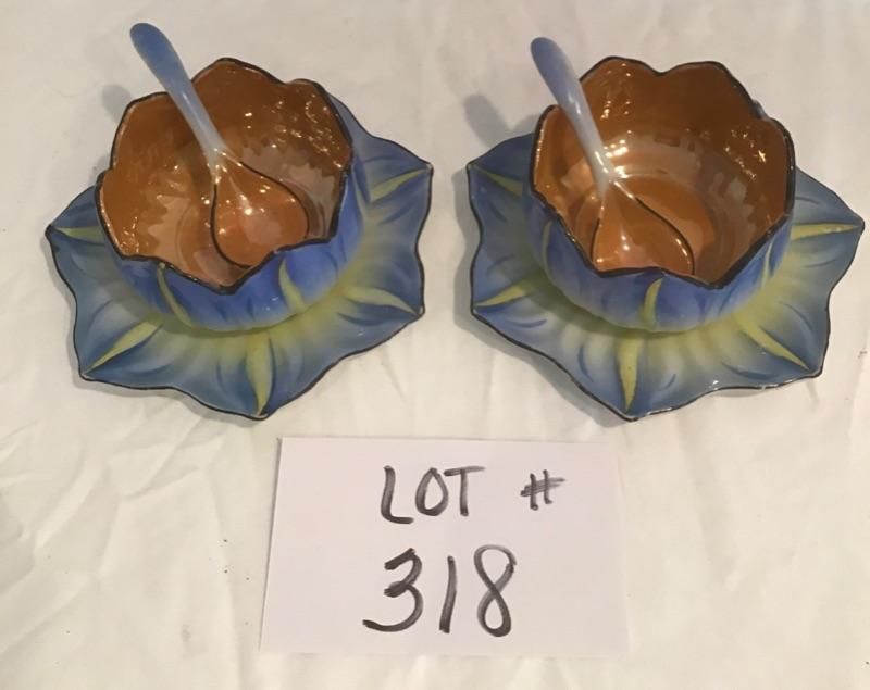 B - 318 A Pair of Vintage ART DECO NORITAKE JAPAN Hand Painted LOTUS FLOWER Bowl and Saucer with Spoon