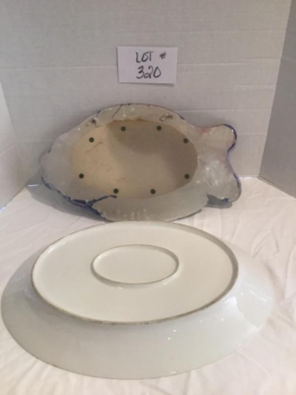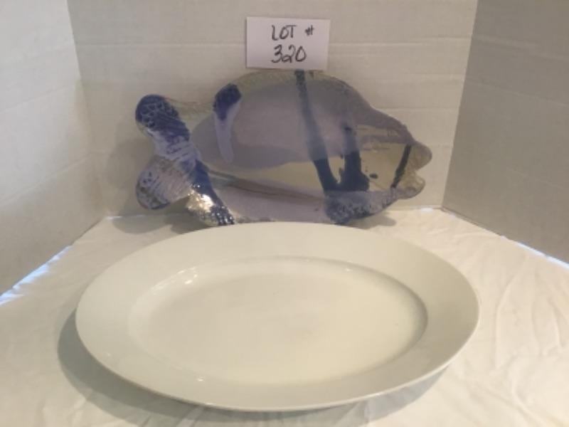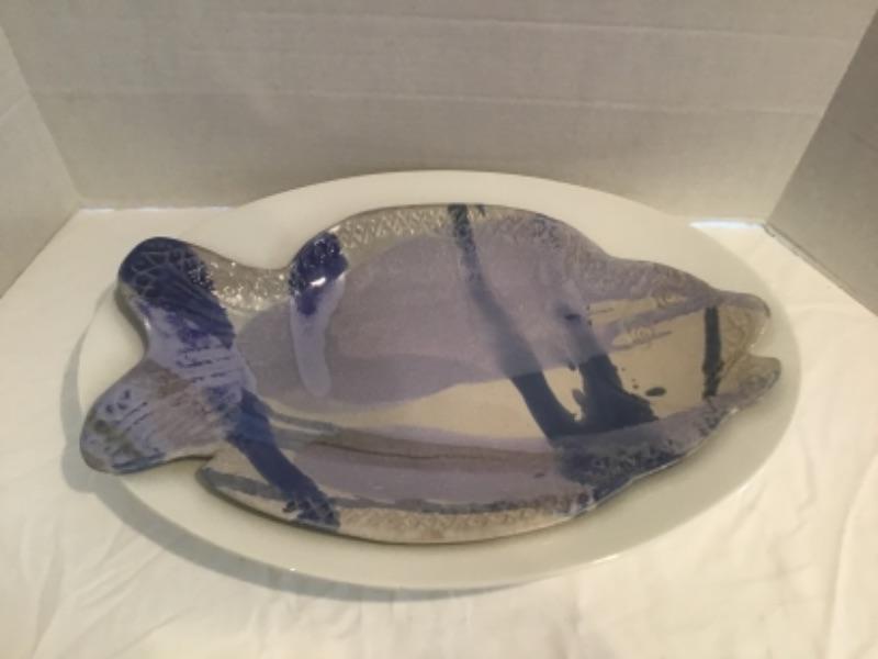 B - 320 Very Large White Platter with Large Fish Pottery Platter