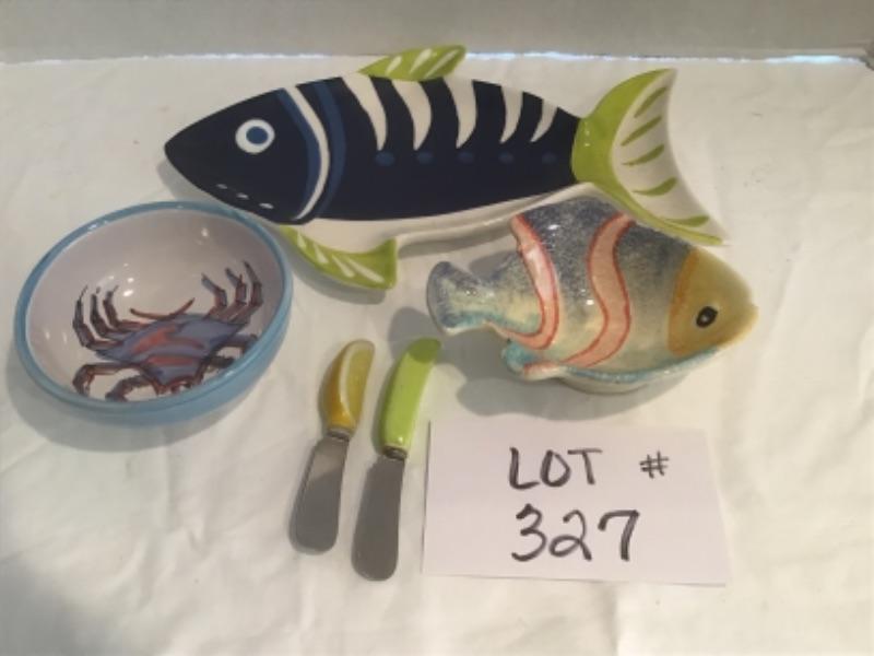 B - 327  Vietri Fish / Crab  Serving Bowls