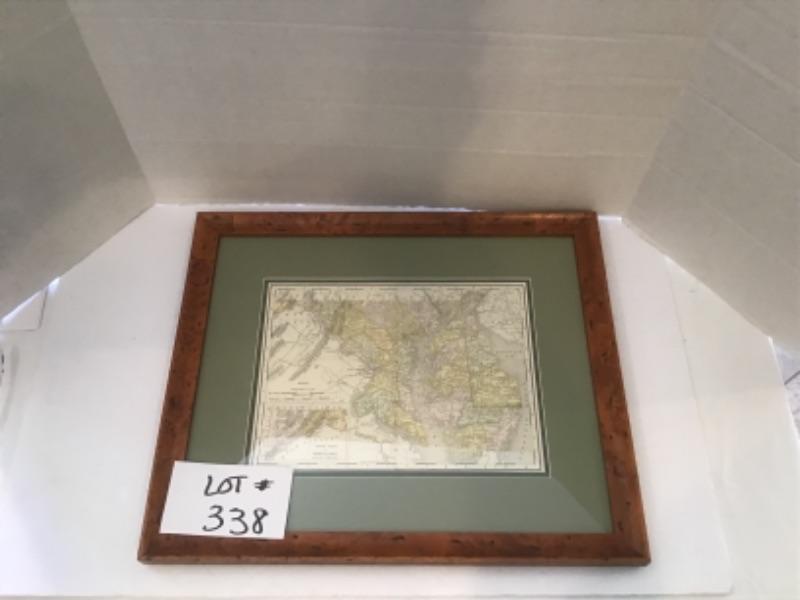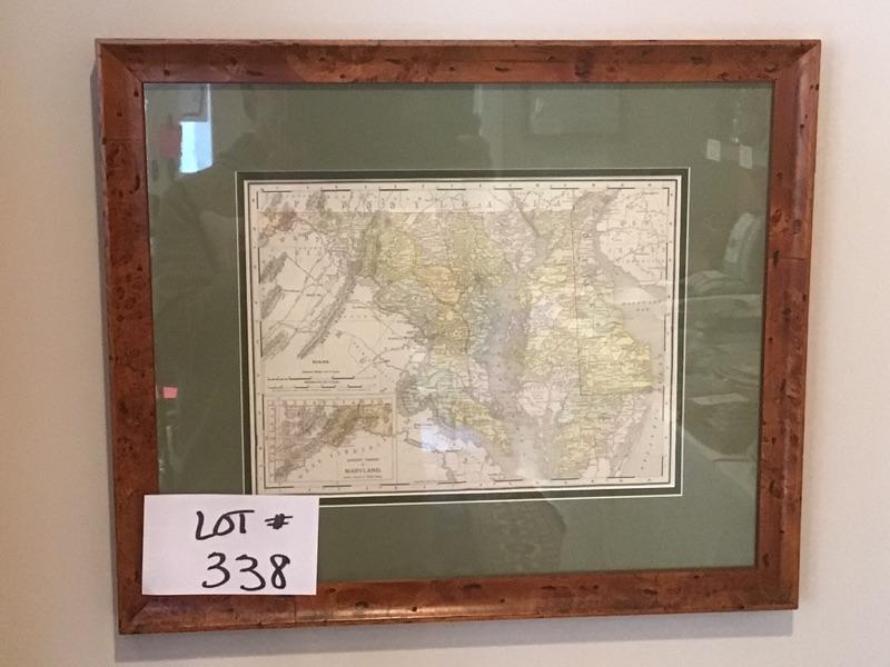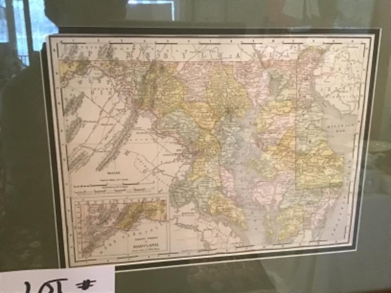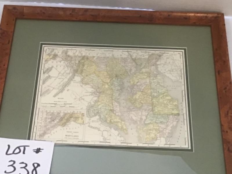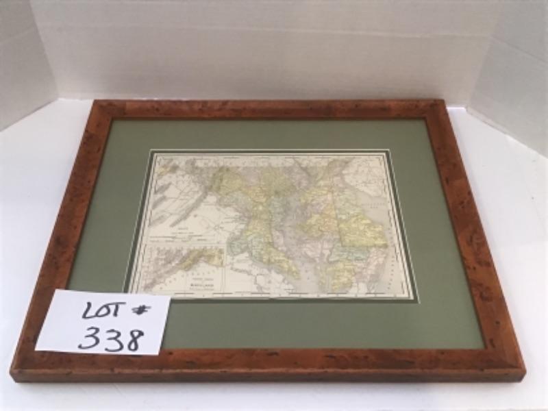 Beautifully Framed Maryland Map, measures 20” X 17”