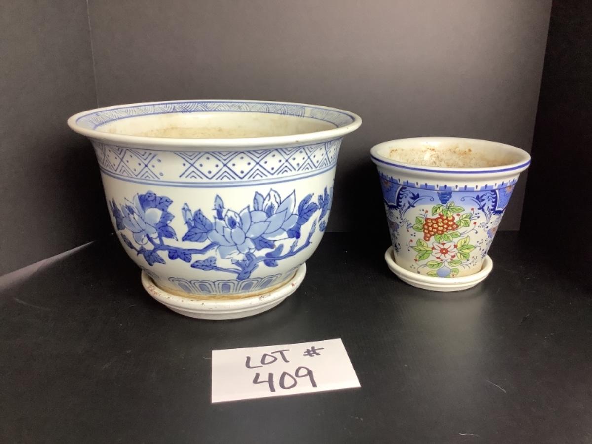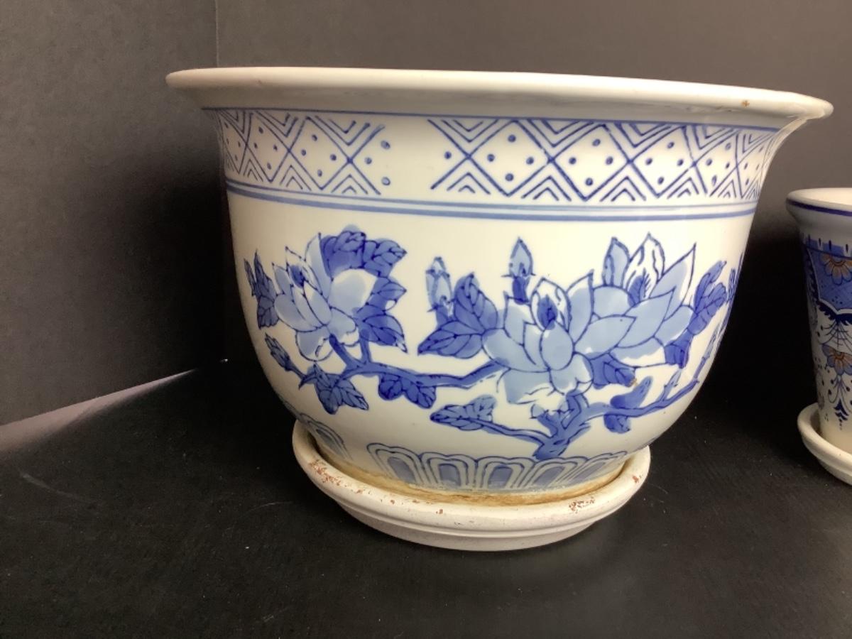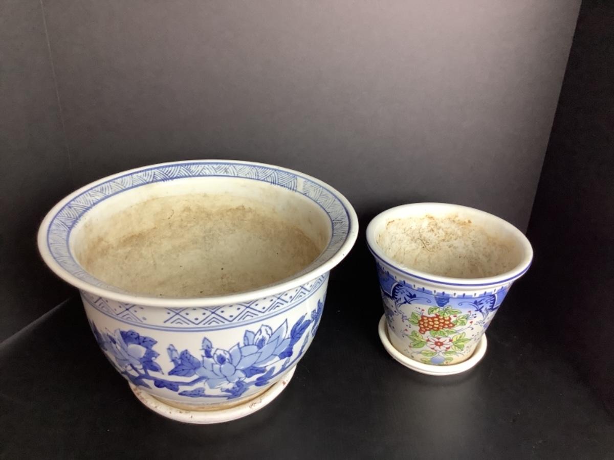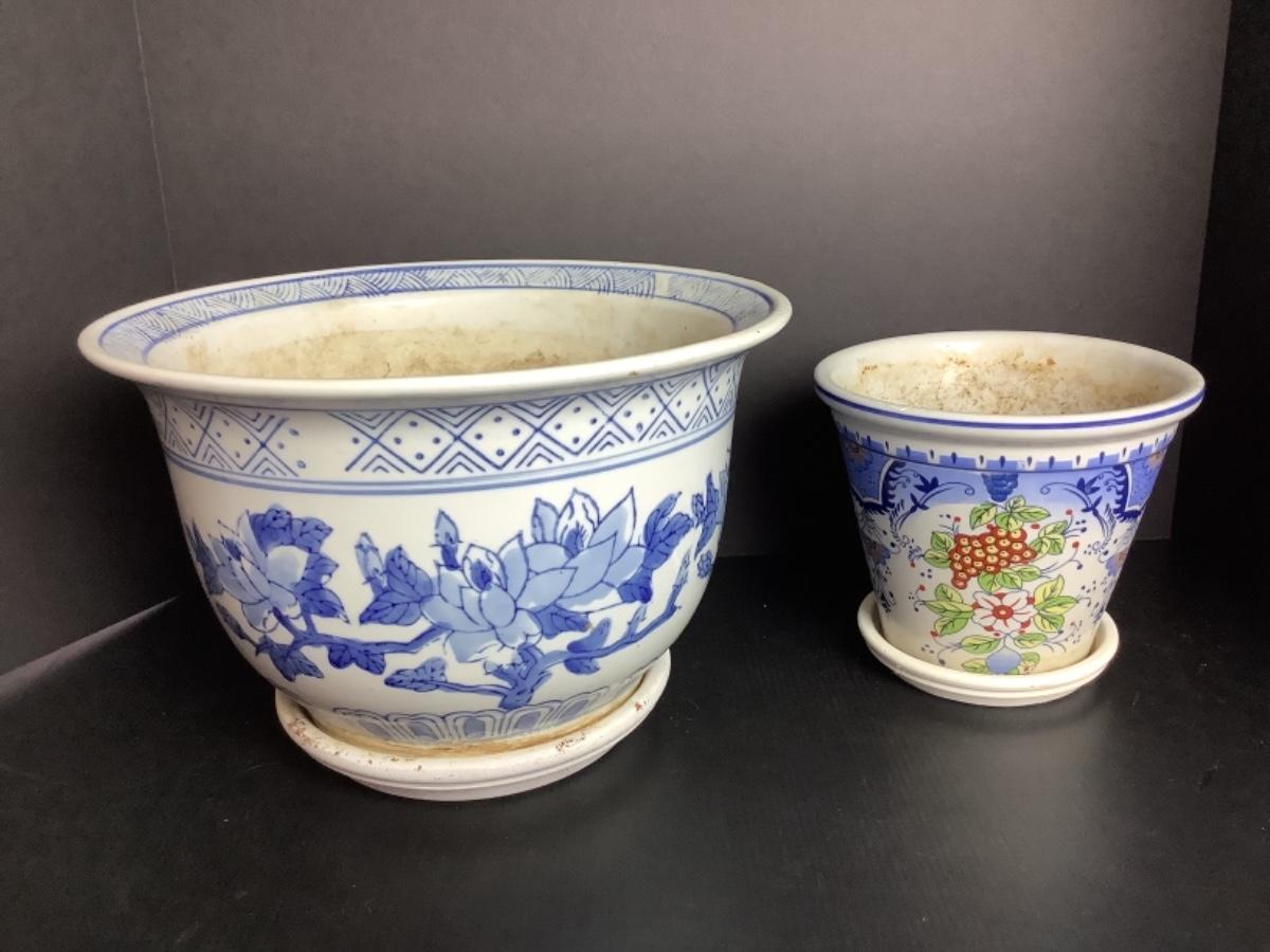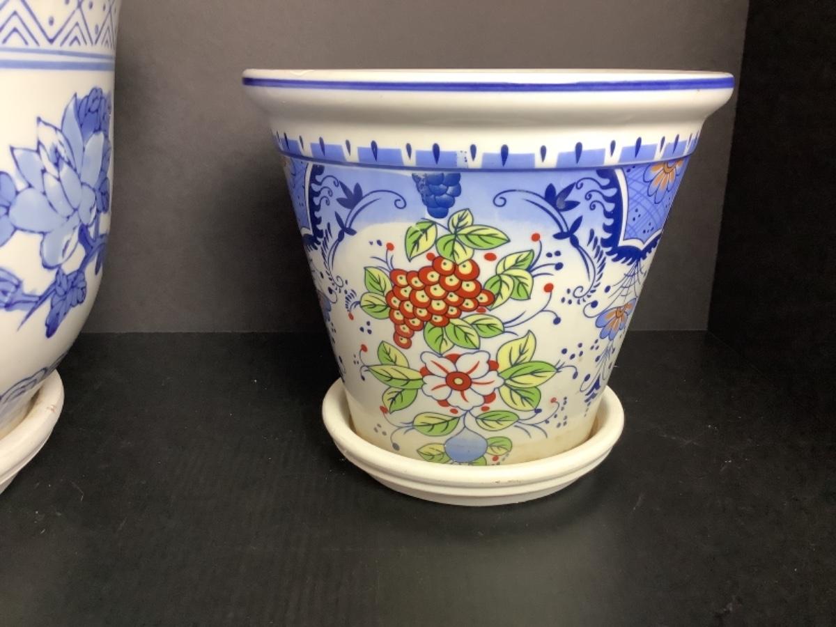 1 ) Blue/White/Colored Floral measures 7” Round x 6” High