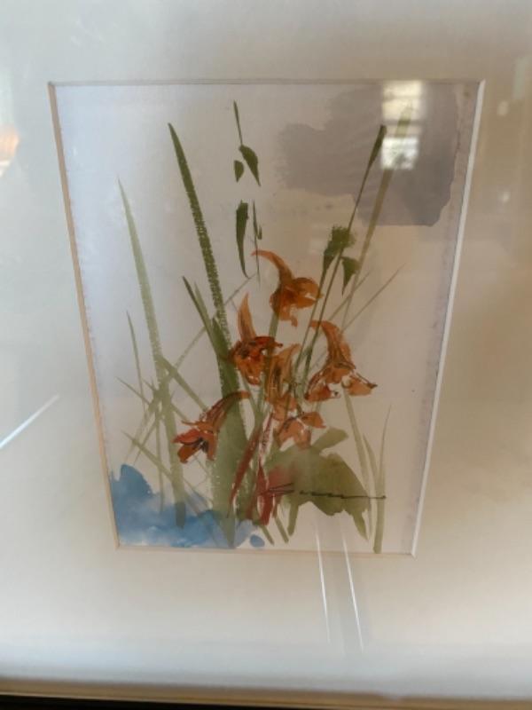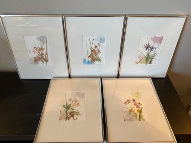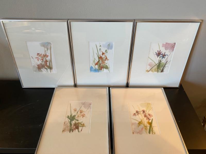 B - 446 Set of 5 Signed Floral Watercolors by Italian Artist