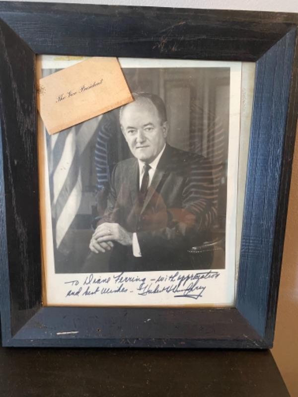 B - 448 Framed Photograph Inscription by Hubert Humphrey