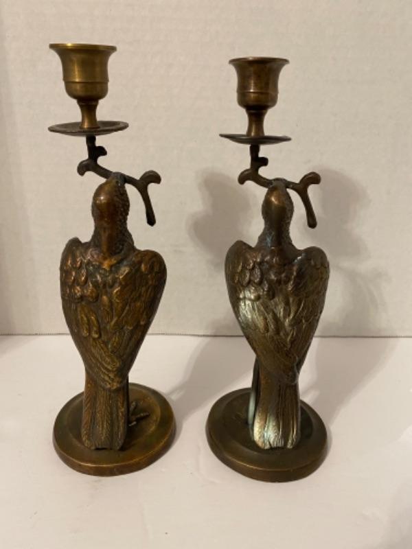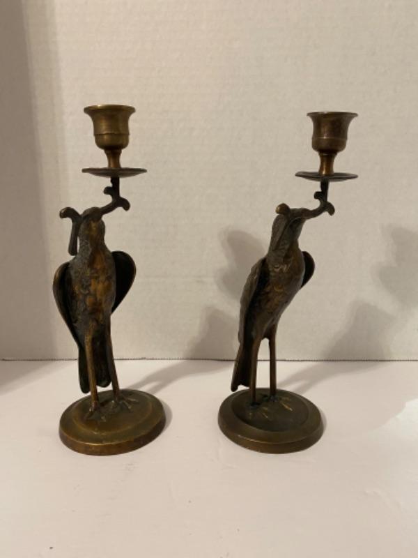 A Pair of Brass Bird Candlesticks approximately 10” TALL