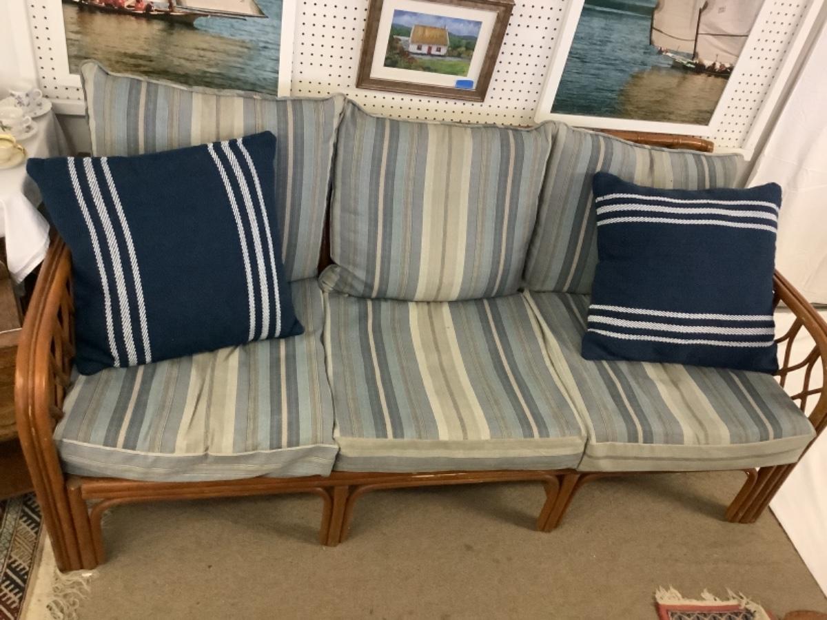B - 471 Vintage Bamboo Sofa with Cushions & Pillows
