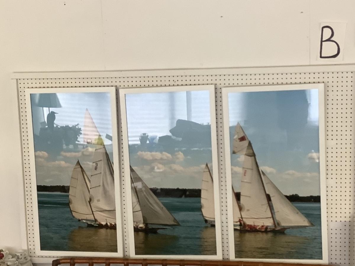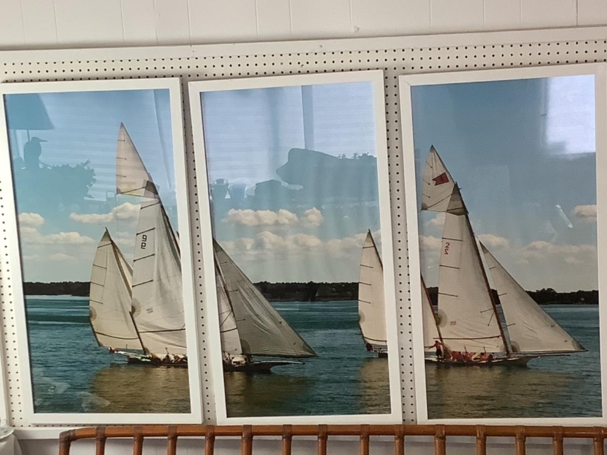 B - 480 Set of 3  Framed Log Canoe Photographs by Susan Handshuh