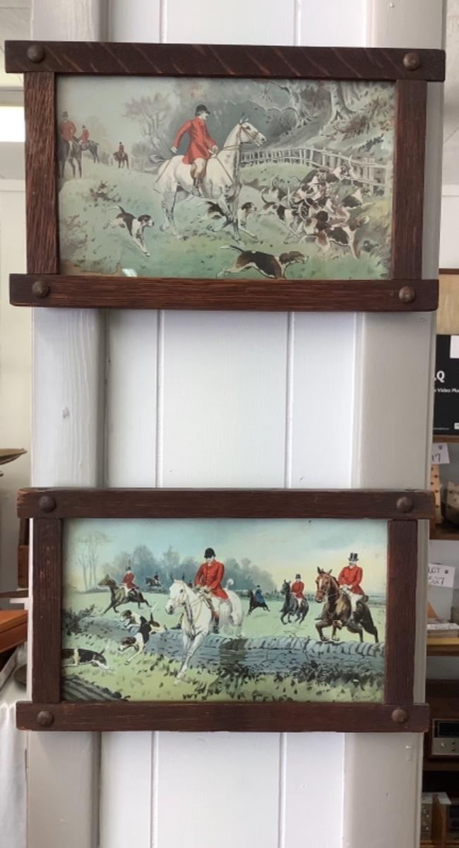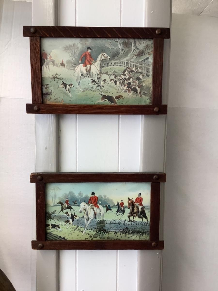 B - 532 Pair of Antique Equestrian Oak Framed Prints