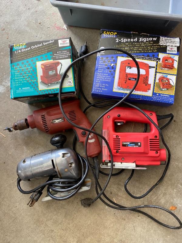 Lot of 5 small electric hand tools. Made by Shop Source. UNTESTED.