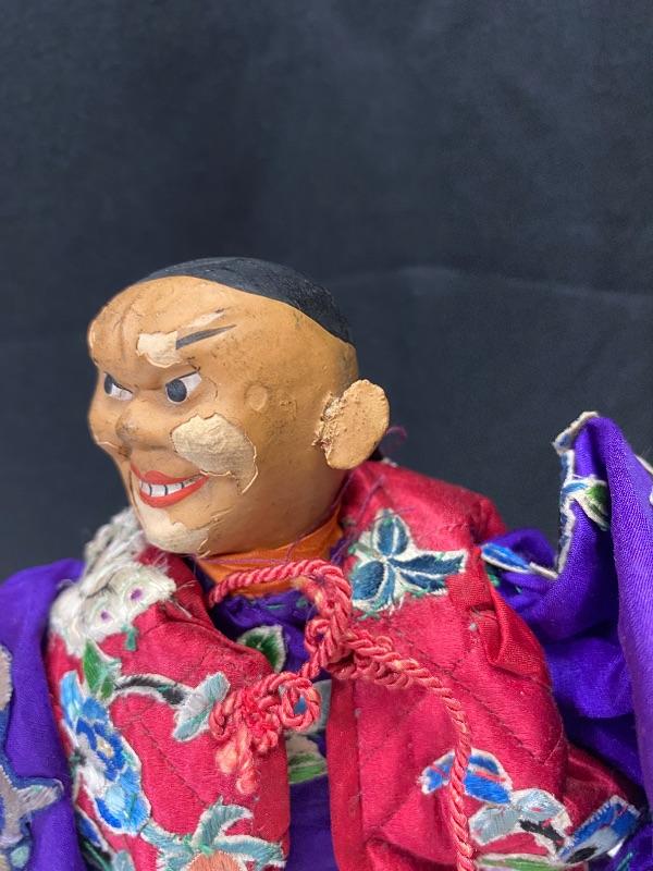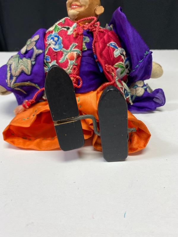 RARE Schoenhut Chinaman from the Humpty Dumpty Circus. Made in Germany. Not in original clothes. In decent antique condition. There is some damage/chips to face & head. Limbs seem to be good, has both ears. Did not find one quite like this, this one has like a walker bar in the feet. About 9" size.