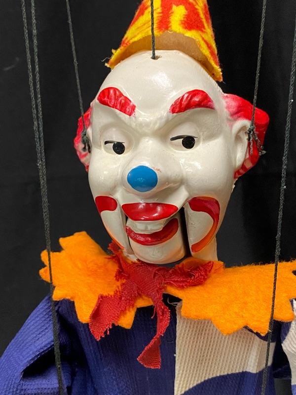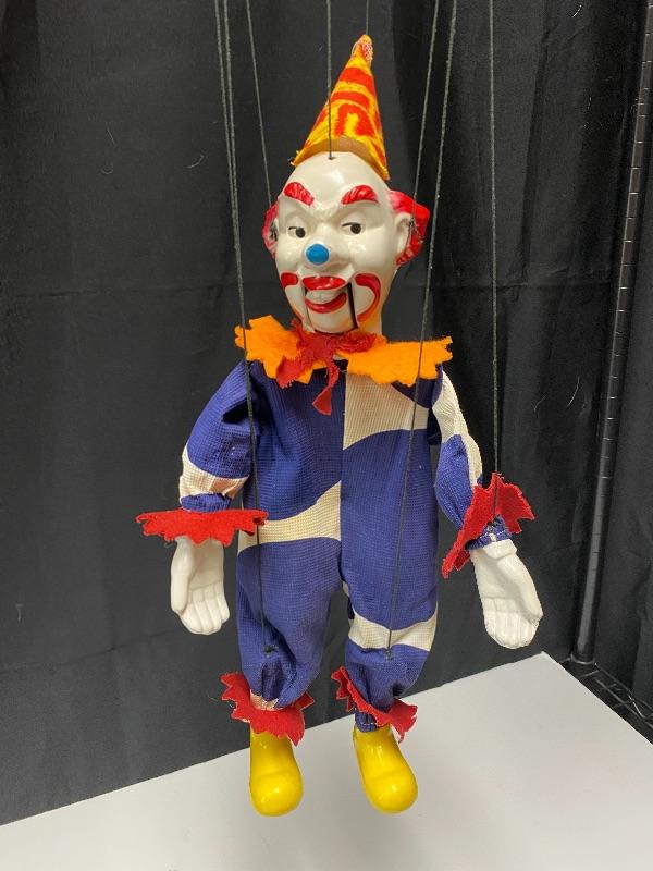 Vintage Peter Puppet Playthings circus clown marionette. Rare, I have not been able to find him online. Great vintage condition. About 15" size not including strings.