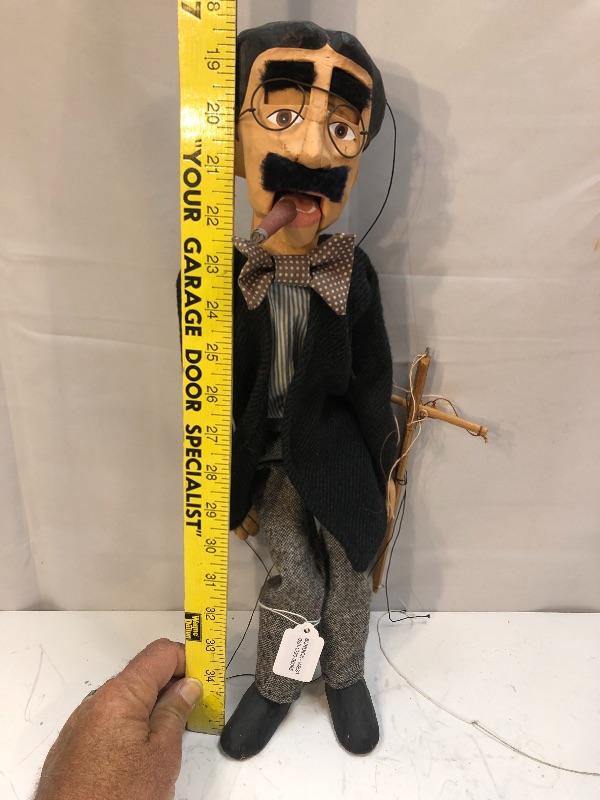 Vintage Marx Brothers Groucho Marx marionette ventriloquist puppet. About 20" size. Displays great.