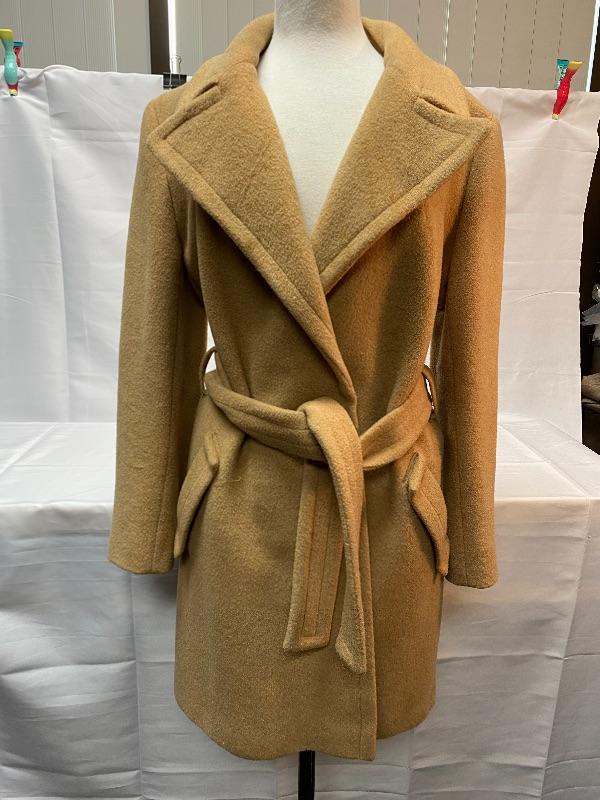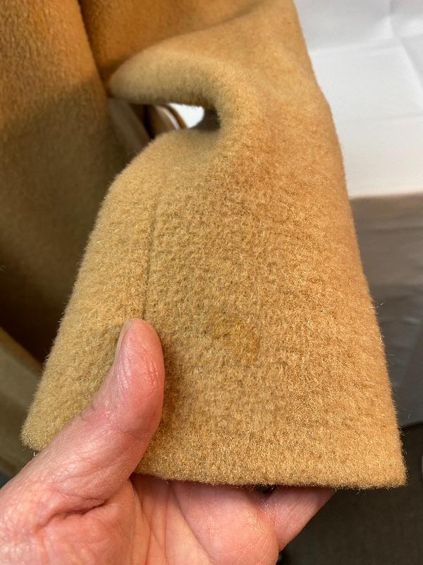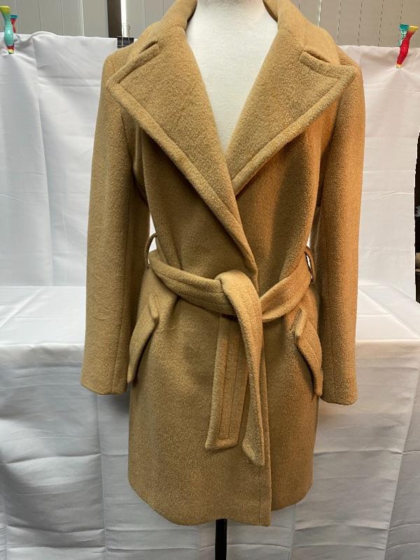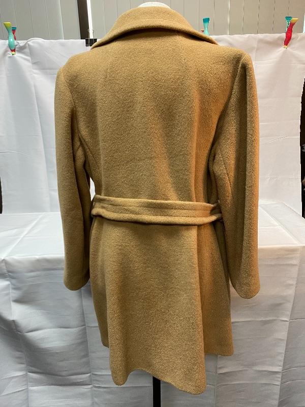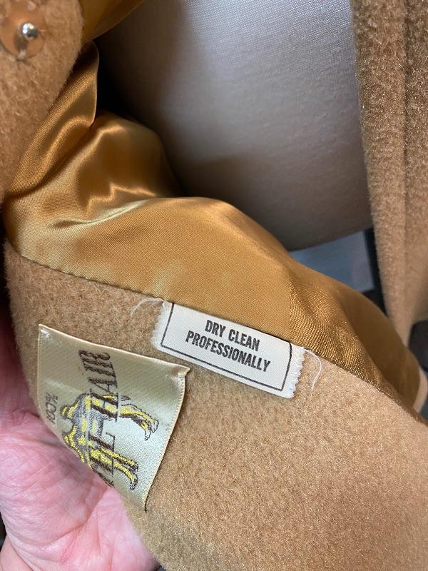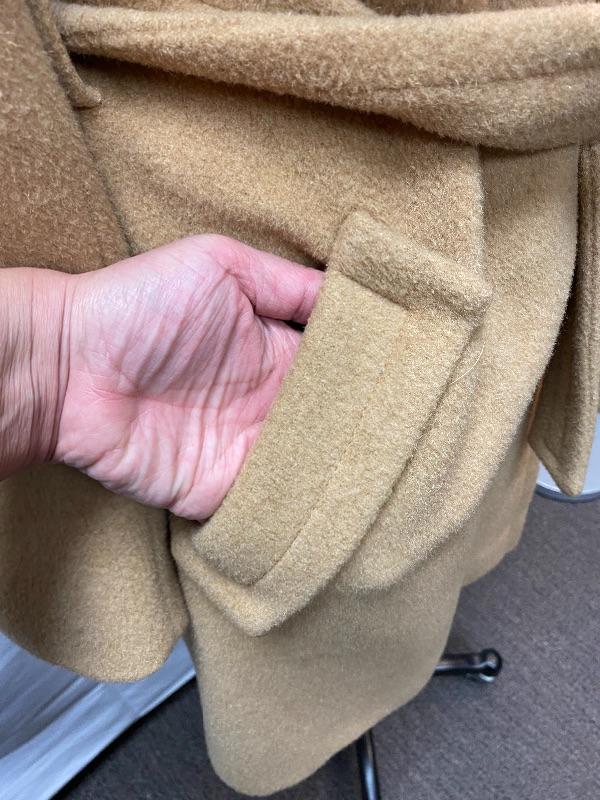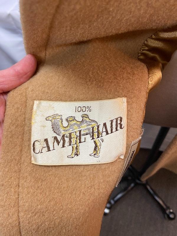 Vintage authentic 100% camel hair jacket. Belted waist, front pockets. No size tag inside, tried it on, it is a vintage large if I had to guess, based on the fit. Thigh length. In good condition.