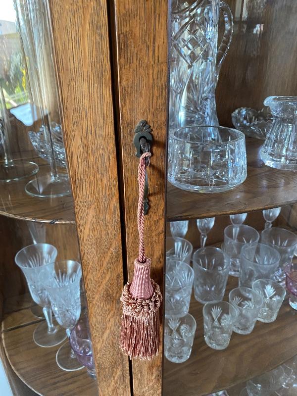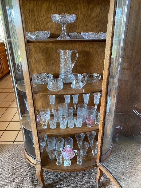 Antique Curved Glass and Oak Locking Curio Display Cabinet **CABINET ONLY**