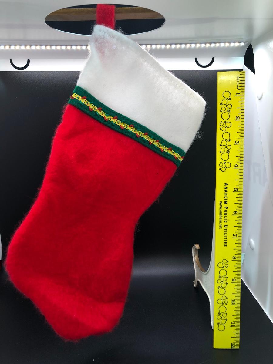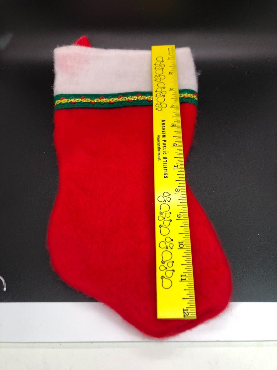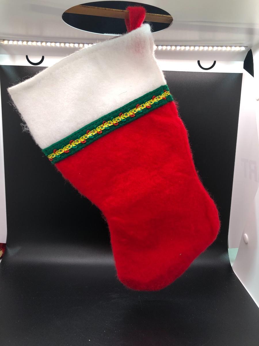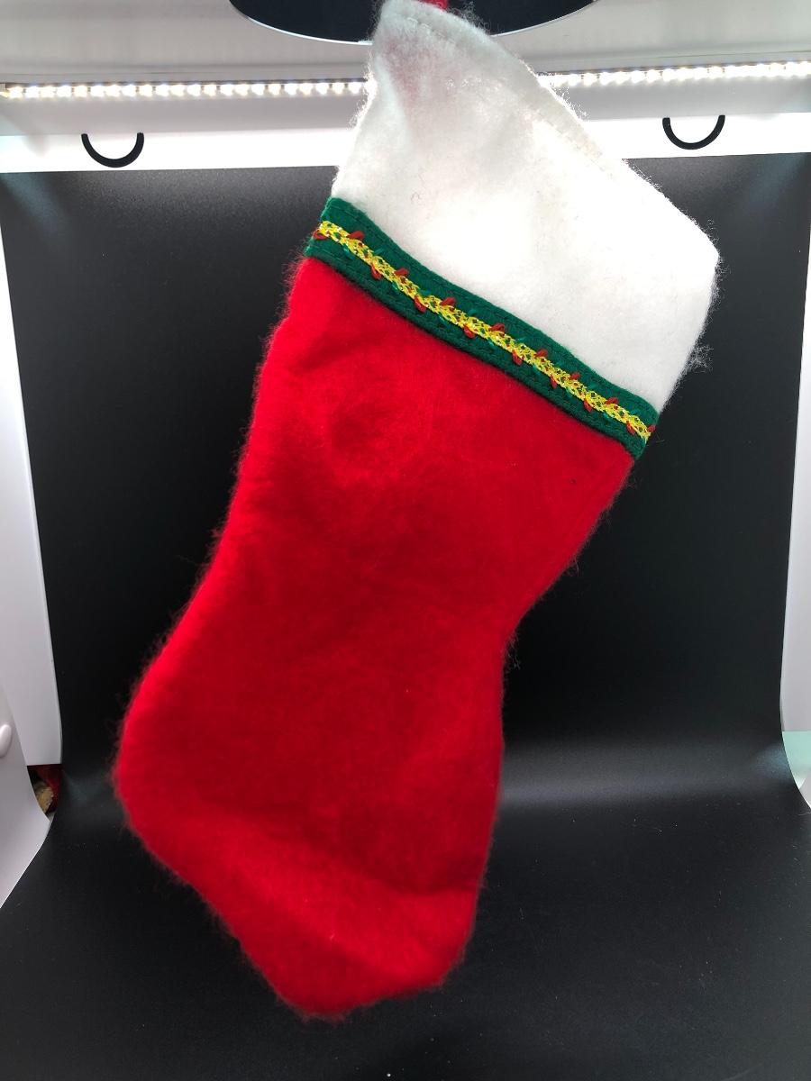 Traditional Christmas stocking. Loop for hanging. Felt material, approx. 12” long.