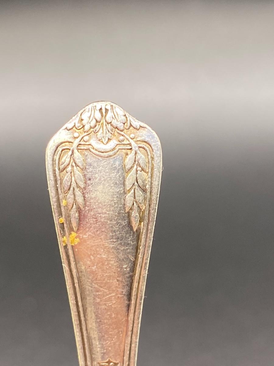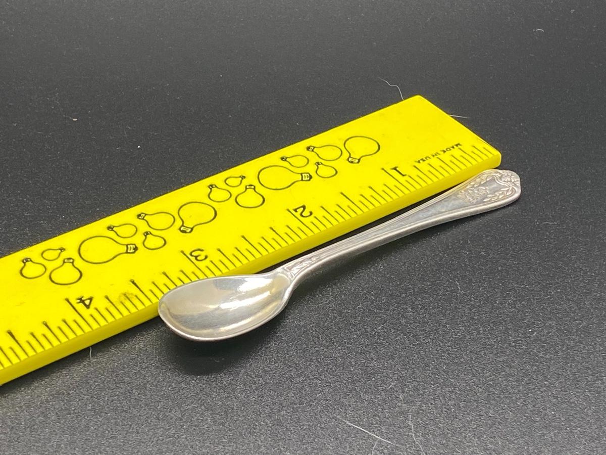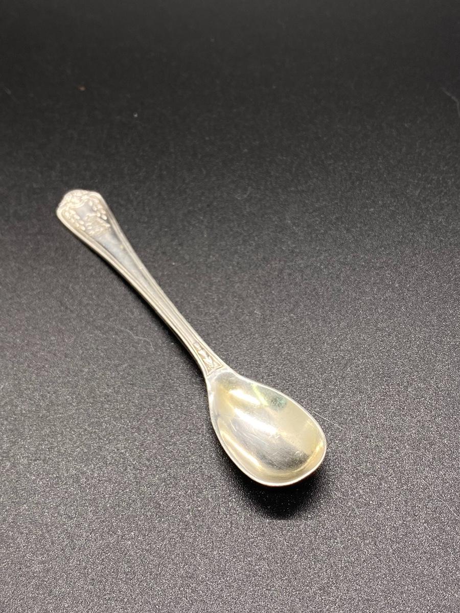 Small antique sugar or salt spoon. Silver plate, about 3.5". Has a lion stamped into the end. Great for spoon ring or repurposed into another craft.