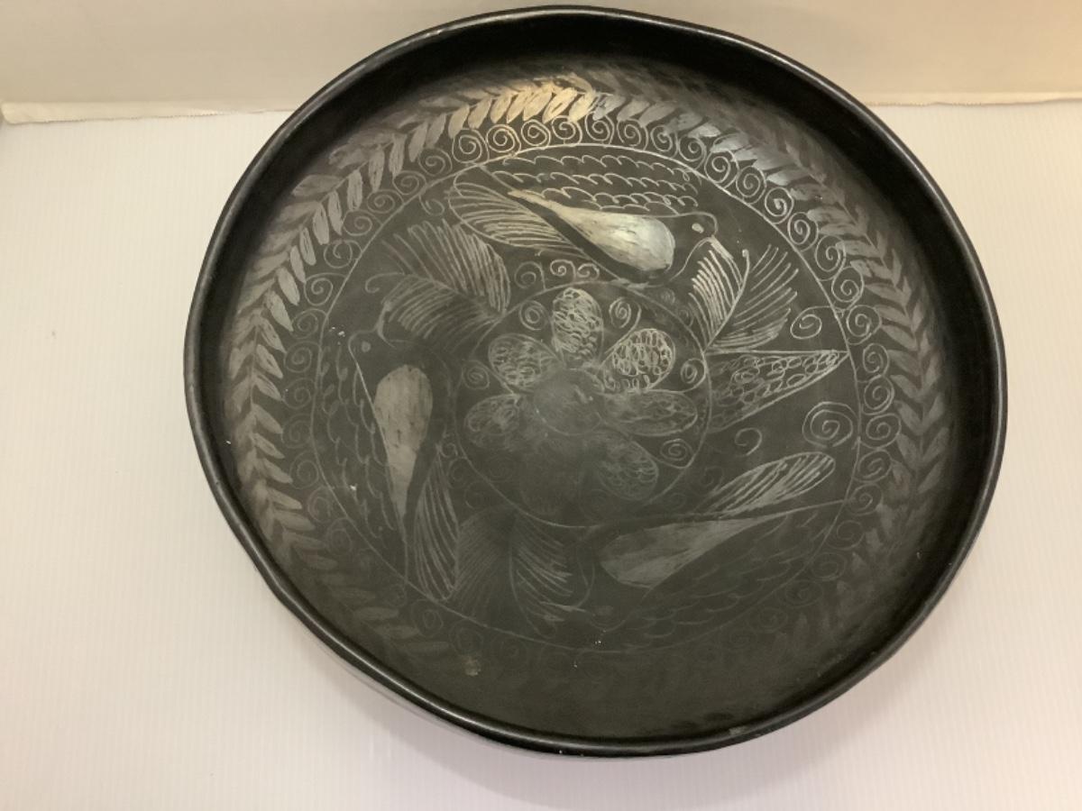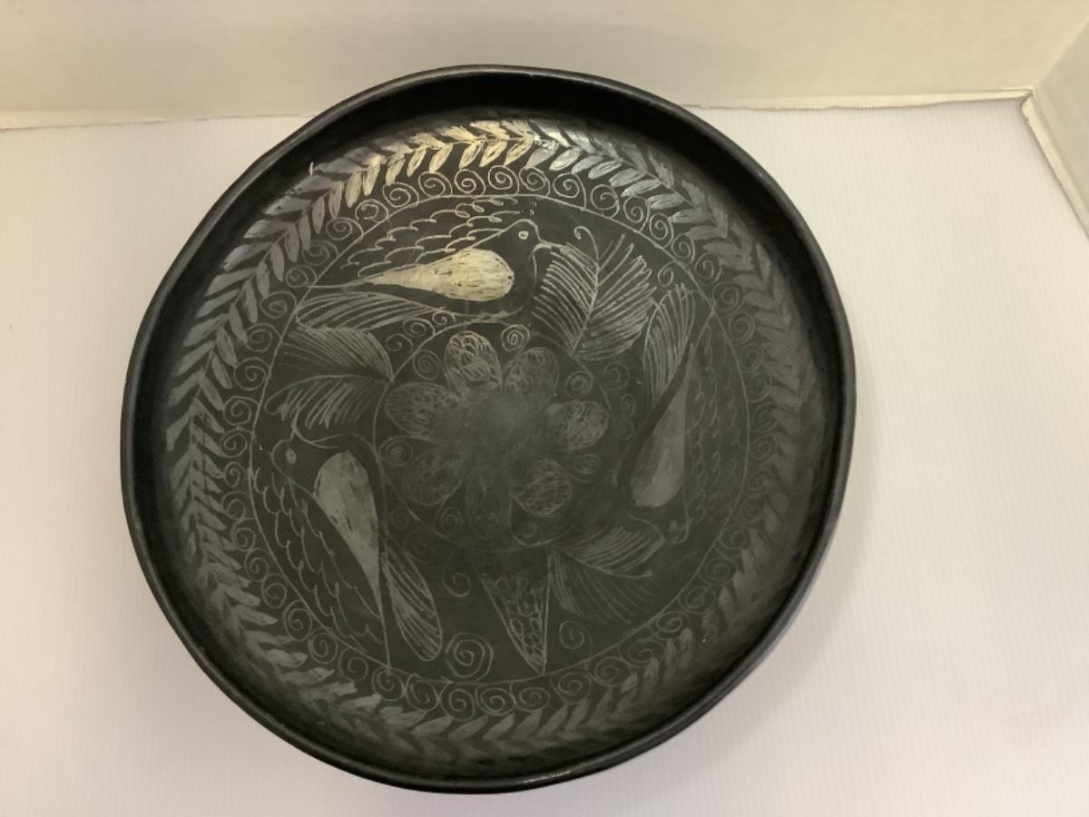 B - 601  Etched Black Metal  Round Footed Bowl