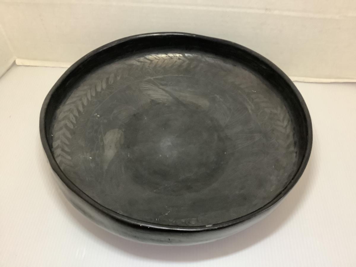 Etched Black Metal Round Footed Bowl
